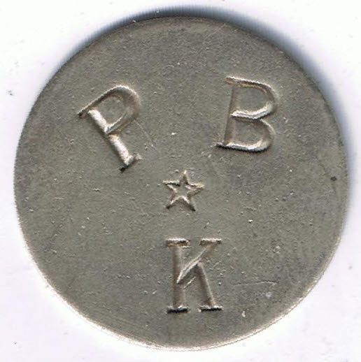 Mc 1230. P B (star) K. (Kingston, Ont.) Uniface, WM, incuse, 20mm, EF.