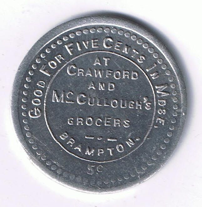 Mc 335 Bo. 116-A-E. Crawford and McCullough's, Brampton, 5c, Alum. 24mm.