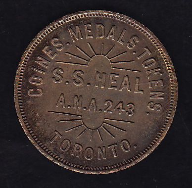 Mc 842. S.S. Heal/ Toronto, ON, brass, 10 struck, AU VERY RARE.