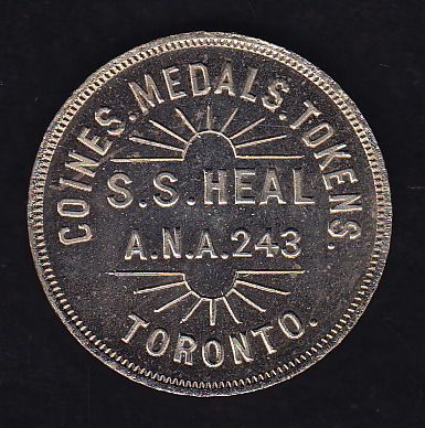 Mc 844. S.S. Heal/ Toronto, ON, 10 struck, German silver, UNC RARE.