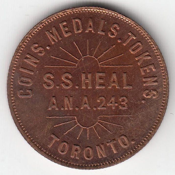 Mc 845. Coins, Medals, Tokens/ S.S. Heal/ A.N.A. 243/ Toronto. Rev: Cheval. Copper, 28mm, UNC. McColl claims 80 struck.
