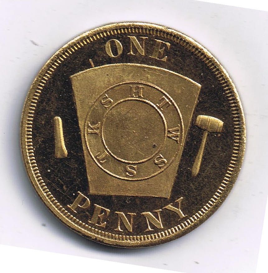 Mc 865. Brass, One Penny and Masonic Keystone. 31mm.