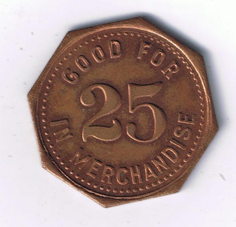 Mc 889. Copper, Octagon, Good for 25 in Merchandise. 25mm.
