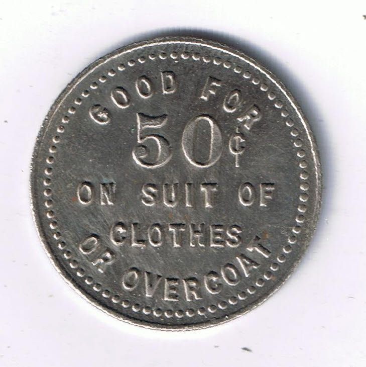 Mc 899. WM, Good for 50c on Suit of Clothes or Overcoat. 25mm.