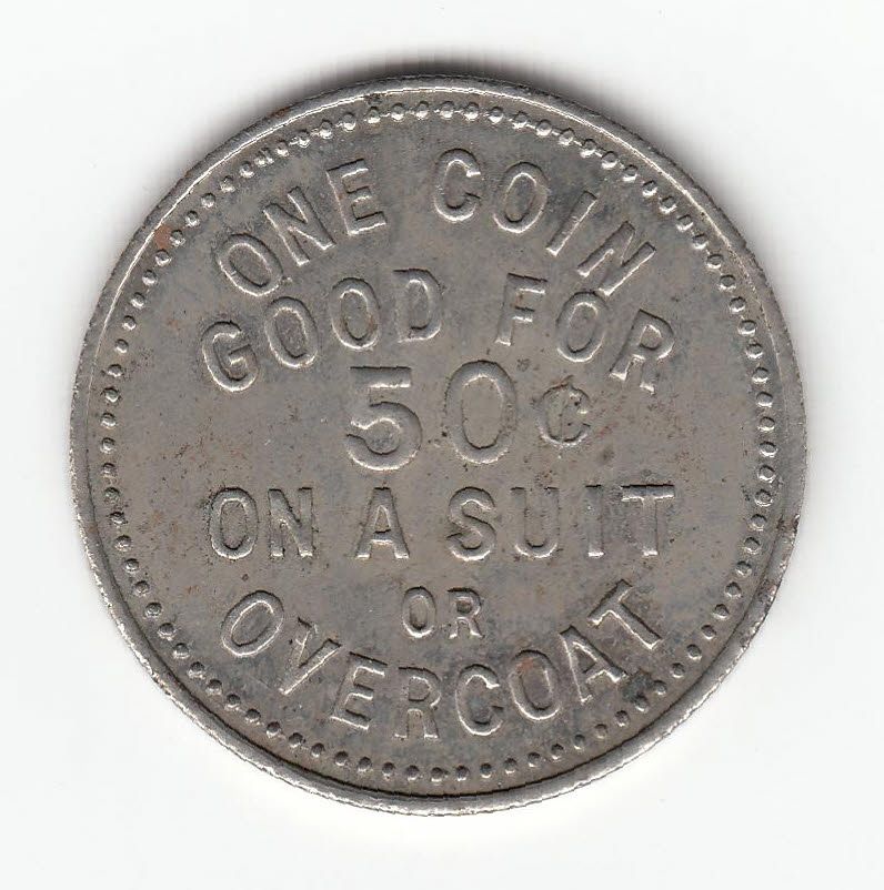 Mc 905. WM, One Coin good for 50c on a Suit or Overcoat.