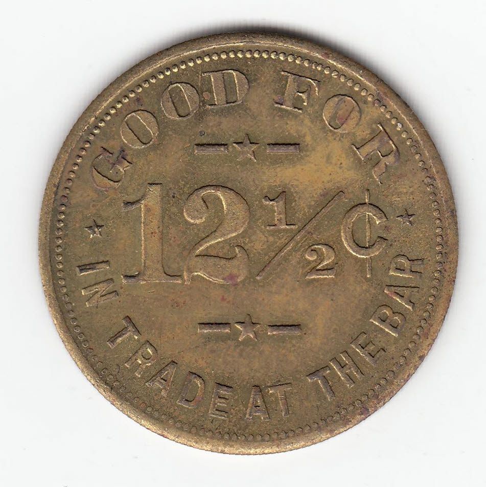 Mc 908. Brass, Good for 12 1/2¢ in trade at the Bar. 35mm.