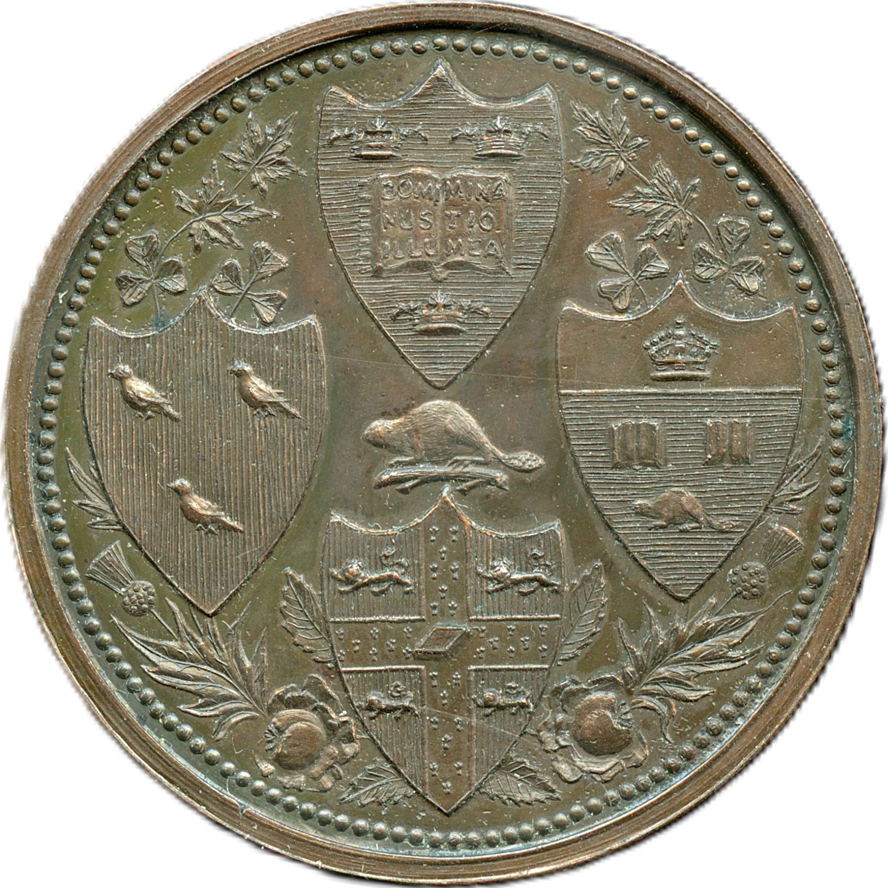 Medal With The Coat Of Arms Representing Oxford, Cambridge, McGill And University Of Toronto. Copper