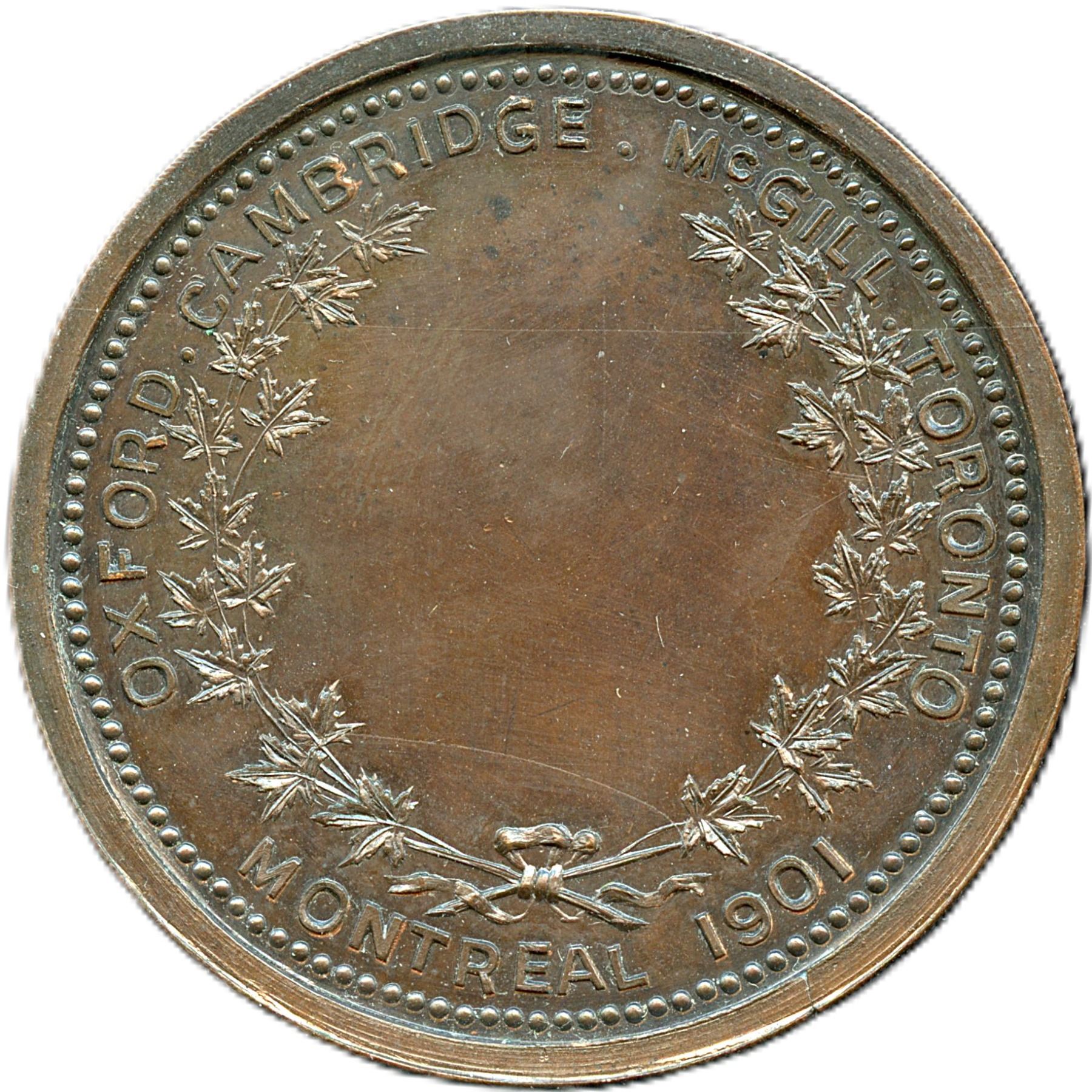 38.3mm, 24.6g, Unsigned. Issued in 1901 in Montreal. UNC. 1pc. Ex. World Exonumia Nov. 7, 2006 Rich Hartzog Sale, Lot 652. From the Geoffrey Bell Collection.