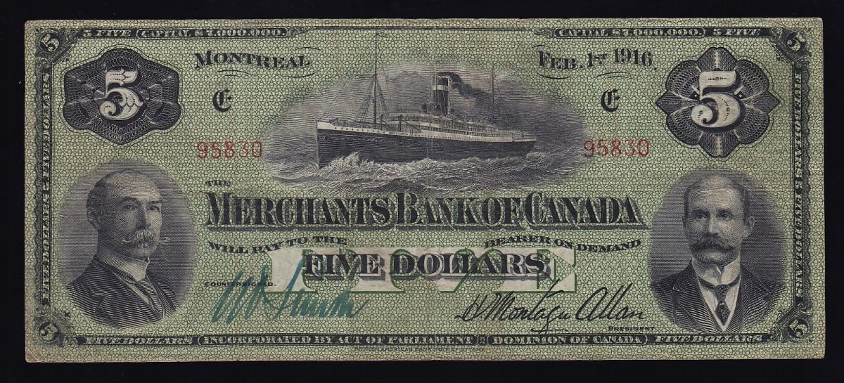 Merchants Bank of Canada $5, 1916