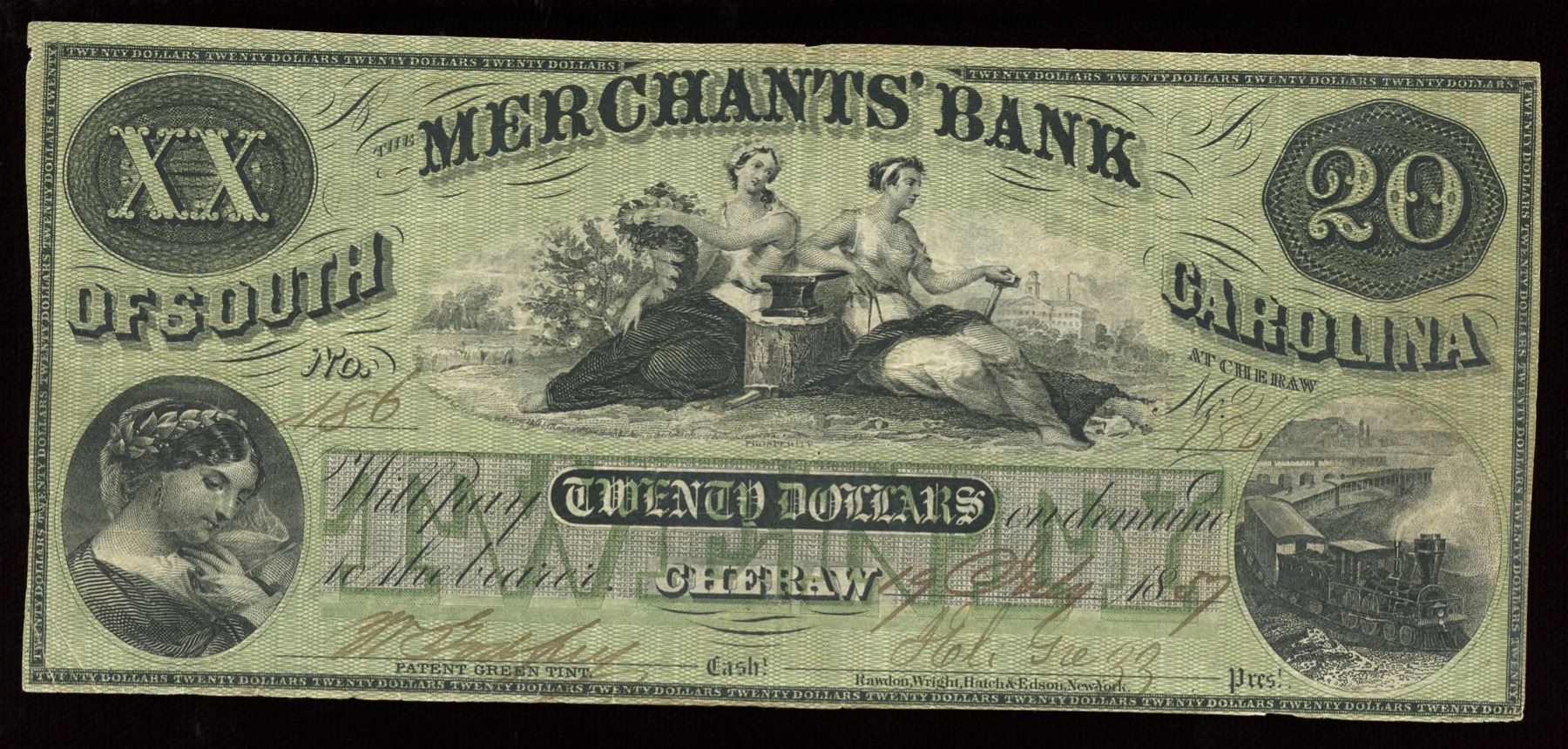 Fine, small tape repair at top centre. S/N: 186/A.