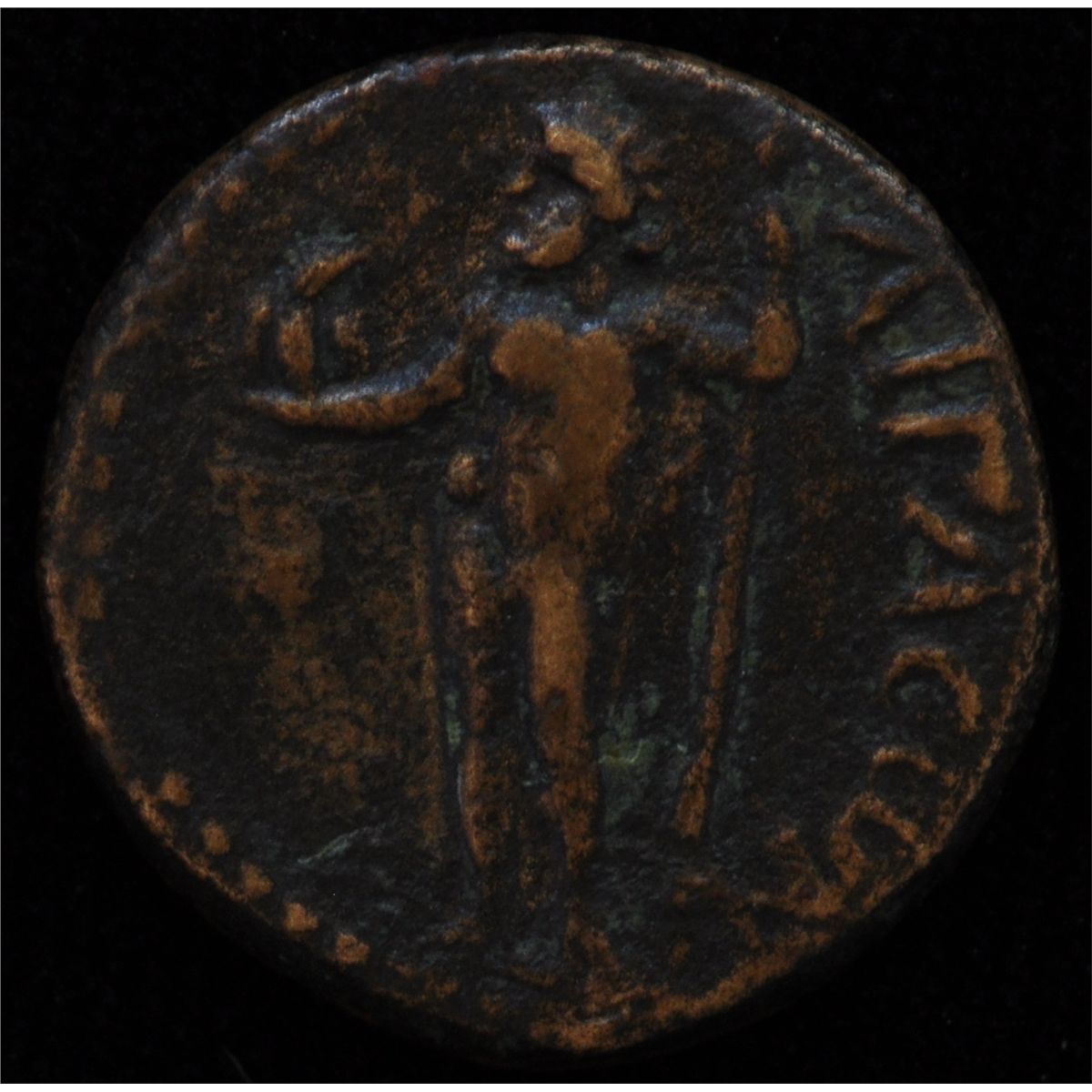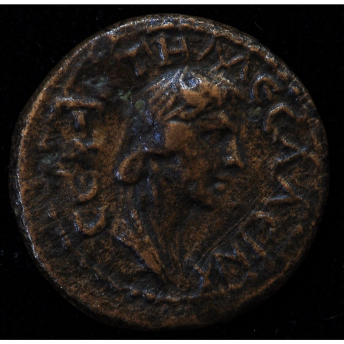 Messalina (43-48 AD) - AE-17 Messalina Aegae, Myrina Obv: Draped bust of Messalina r. MESSALINA SEBASTH. Rev: Zeus stg. l. with eagle in r. hand and spear in l. hand AIGAEWN 3.4 grams RPC 2430 EF.