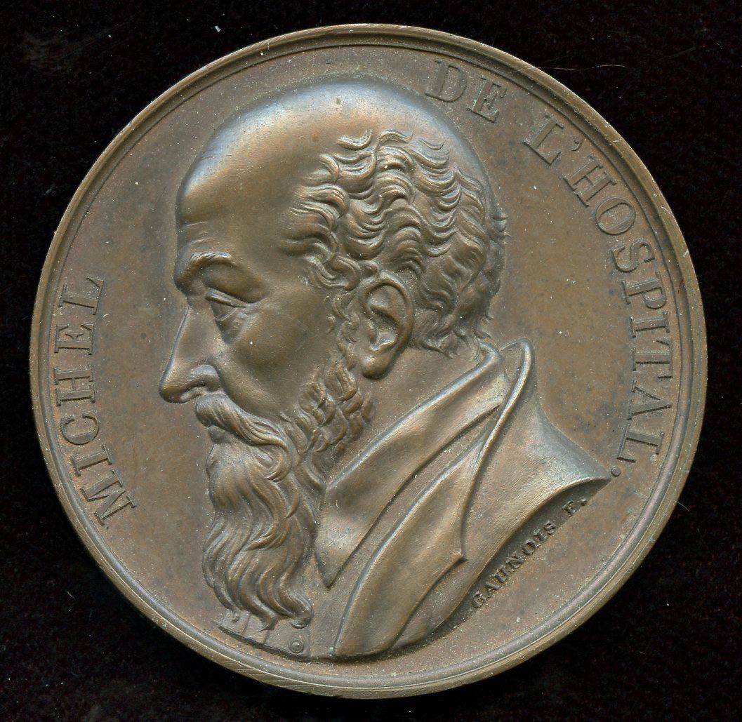 Michel de L'hopital France Bronze Medal, 1817 - Obv: MICHEL DE L'HOPITAL Bust facing left. Rev: NE EN M.D.V. A LA ROCHE PRES AIGUEPERSE. MORT EN M.D.LXXIII. GALLERIE METALLIQUE DES GRANDS HOMMES FRANCAIS 1817. Unc. 40.85mm, 38.8 gms.