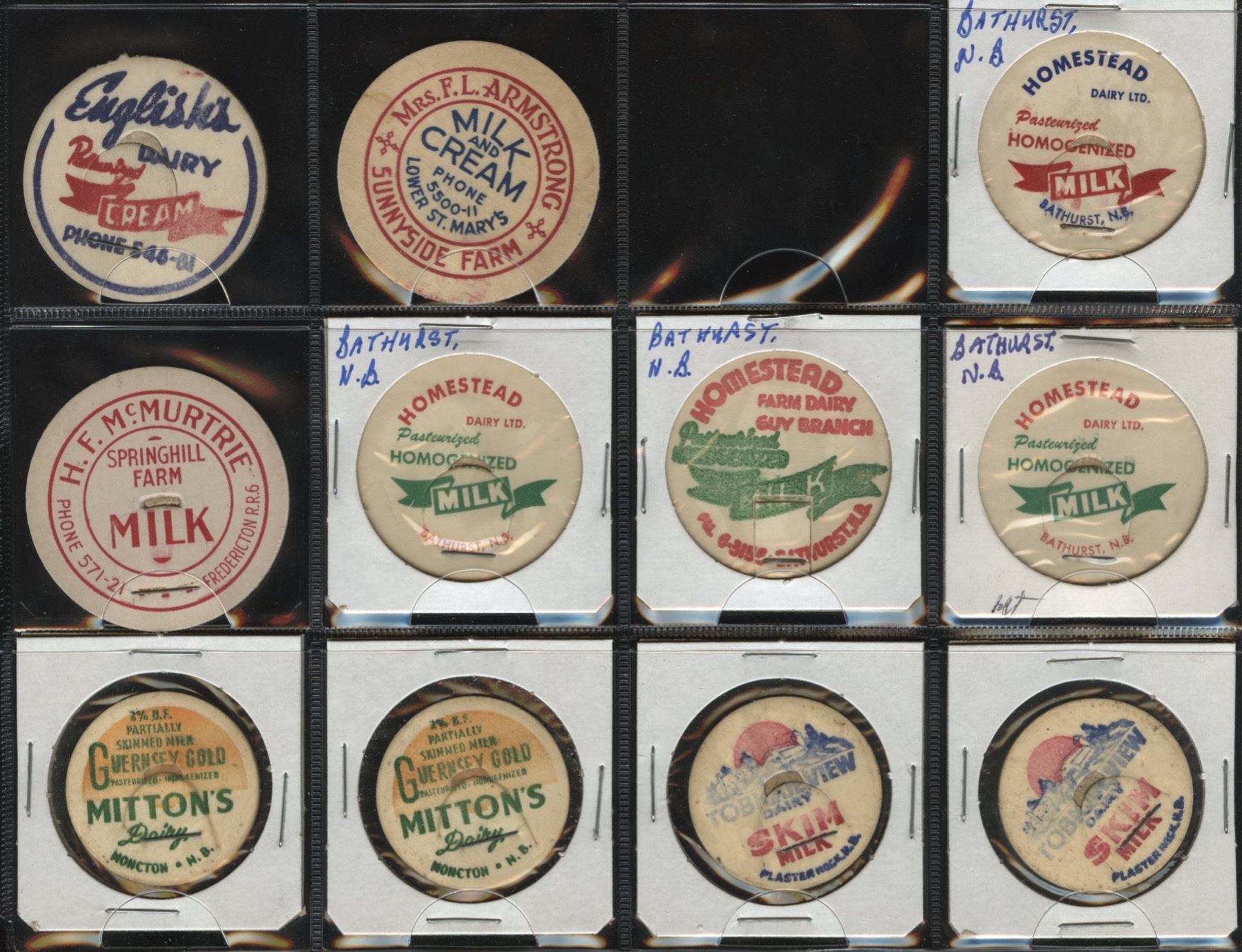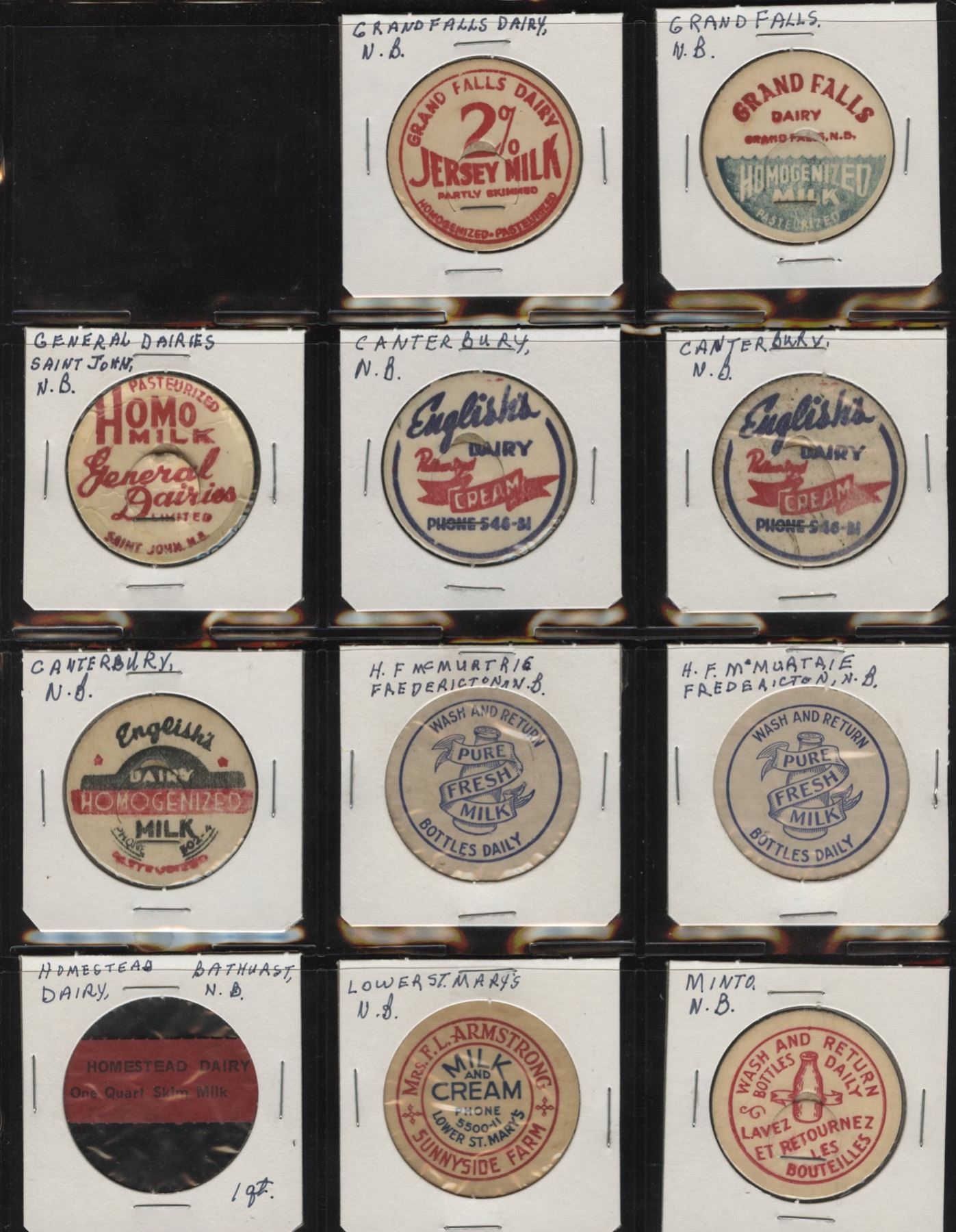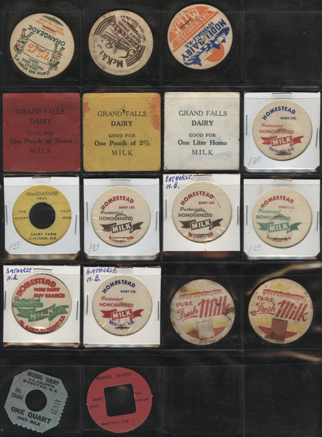 59 New Brunswick cardboard milk tickets and milk caps. All are obsolete dairies and not common. 59 Pcs.