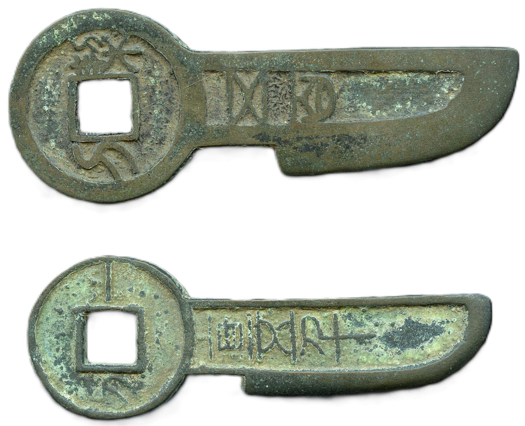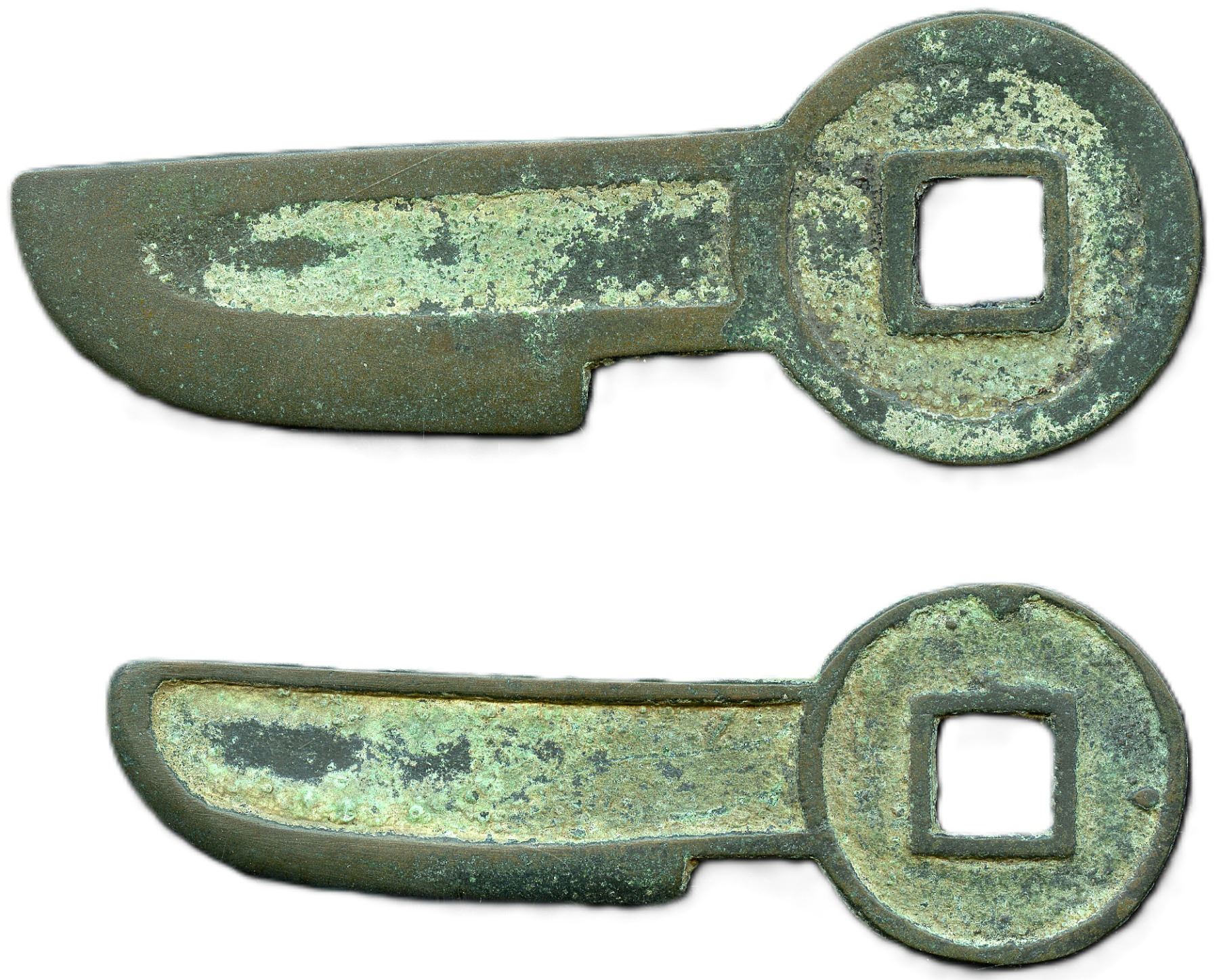 The knife money here (second image) is a ming knife, minted by the state of yan (400-220BC) (https://en.numista.com/61870)