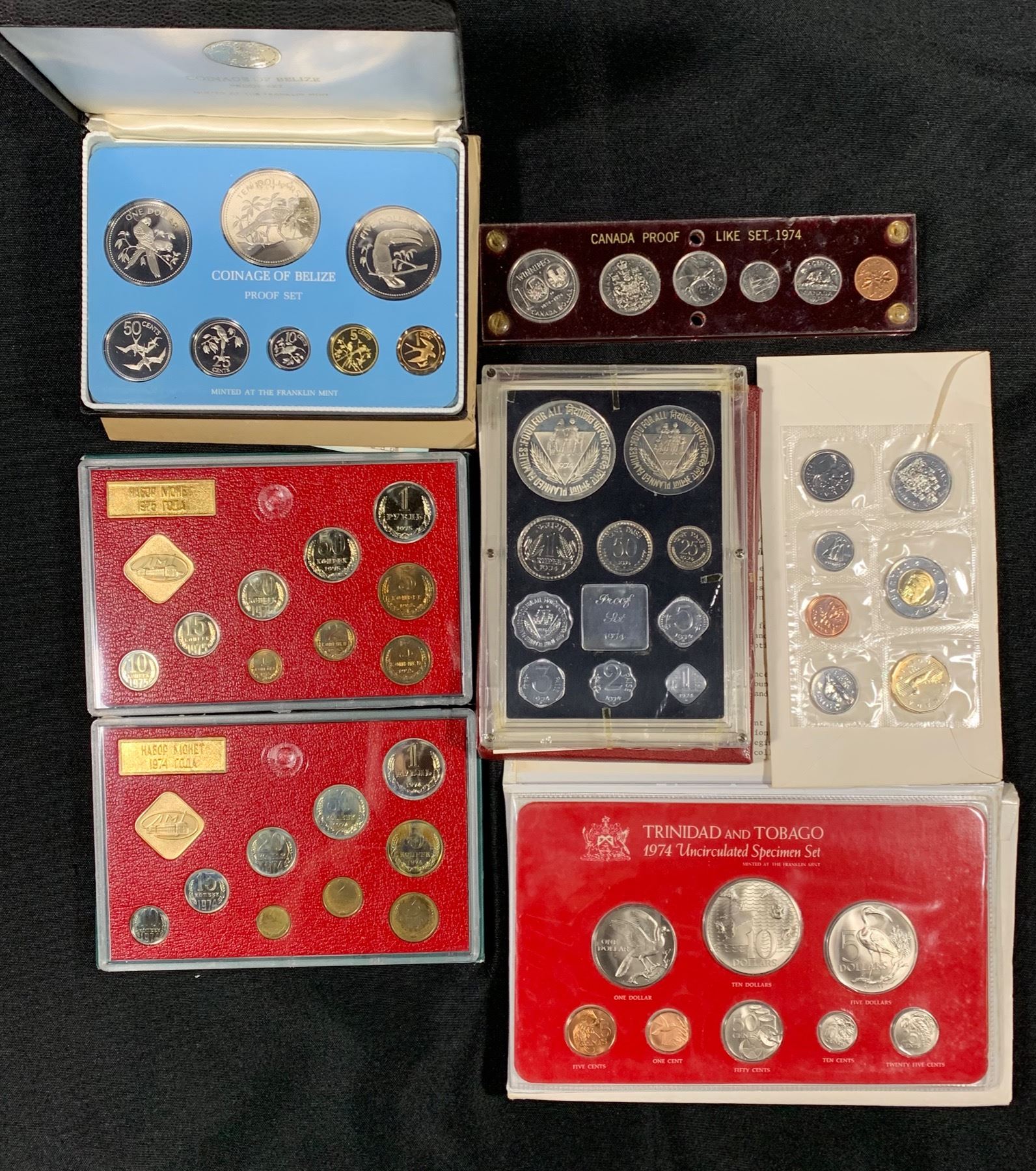 Includes: Russia/USSR 1974 & 1975; Canada 1974 & 1998; Belize 1975; India 1974; Trinidad & Tobago 1974. 7 Sets.