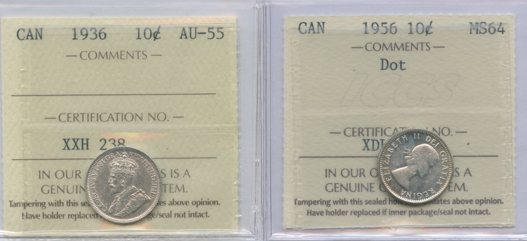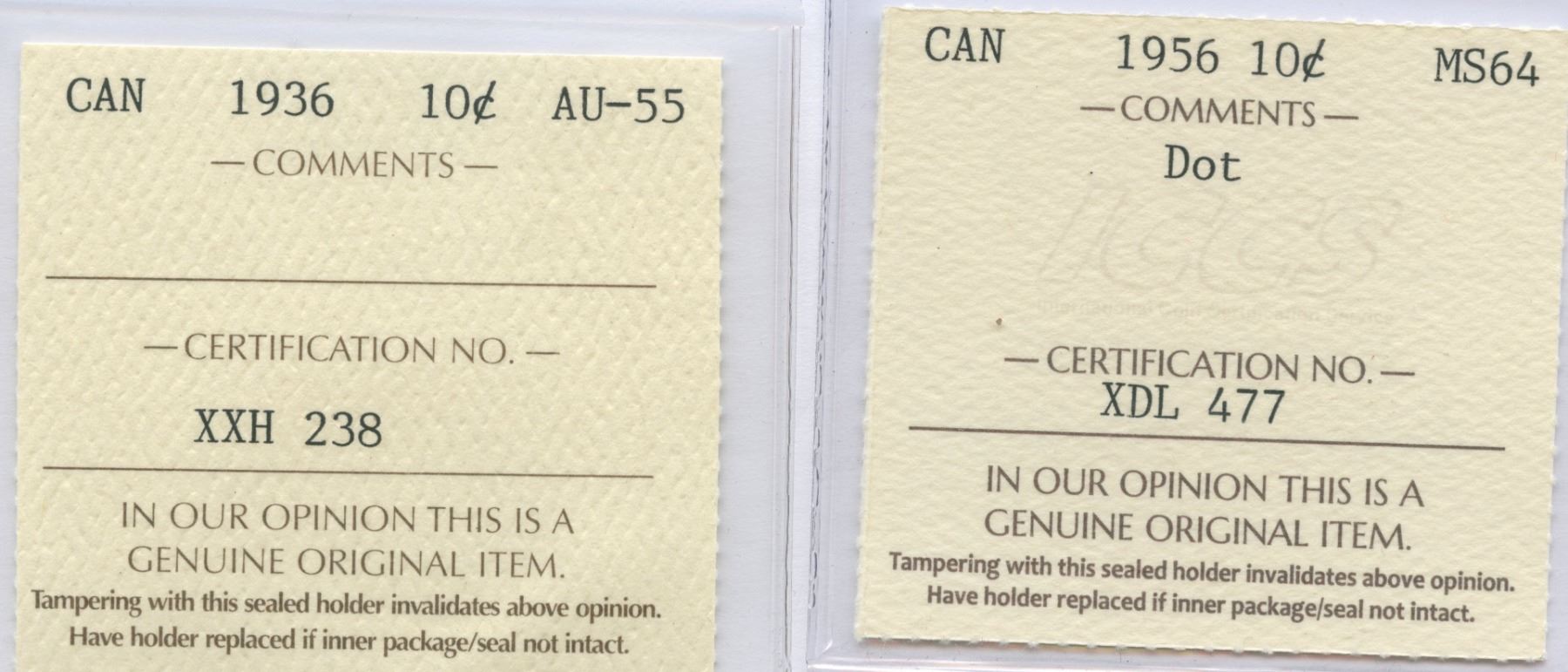 1936 ICCS AU-55. || 1956 ICCS MS64, Dot. 2 Pcs.