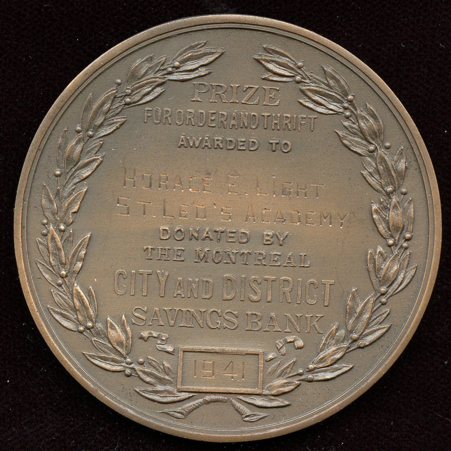 Awarded to Horace E. Light/St. Leo's Academy, bronze, 1941, AU.