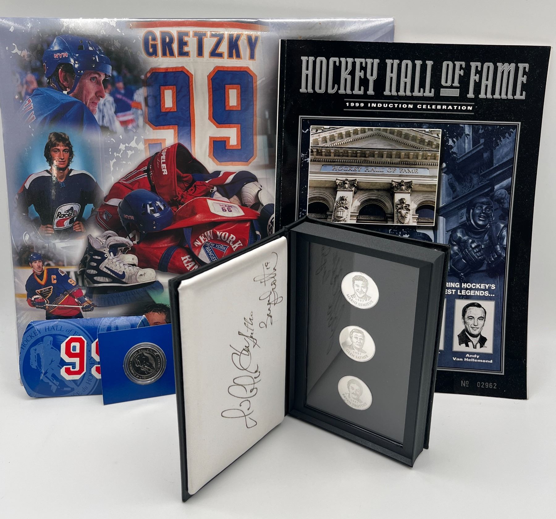 Includes a RCM HHF autographed set of Mario Lemieux, Glen Sather & Bryan Trottier; 1999 Inductions Celebration Calendar; HHF 1999 Induction Celebration Program # 02962, ect.