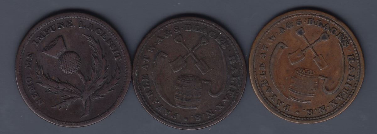 NOVA SCOTIA MERCHANT TOKENS - Group of three merchant tokens