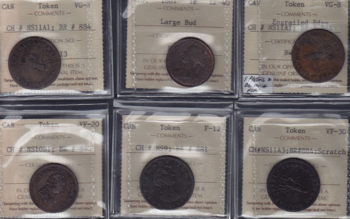 NOVA SCOTIA MERCHANT TOKENS - Six ICCS graded pieces