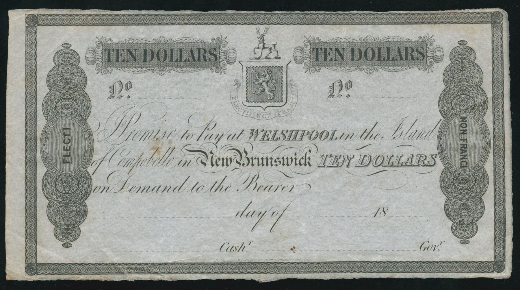 New Brunswick, Campobello Mill & Manufacturing Co. Welshpool, Island of Campobello $10, 1839