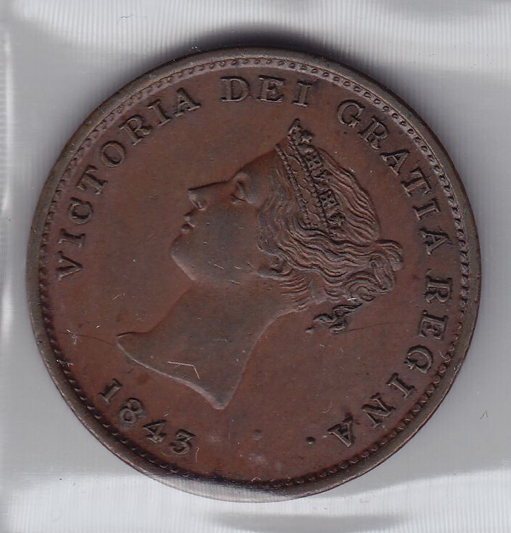 New Brunswick Half Penny, 1843 - CH NB-1A1. Br 910. UNC, a choice specimen with very light cabinet wear.