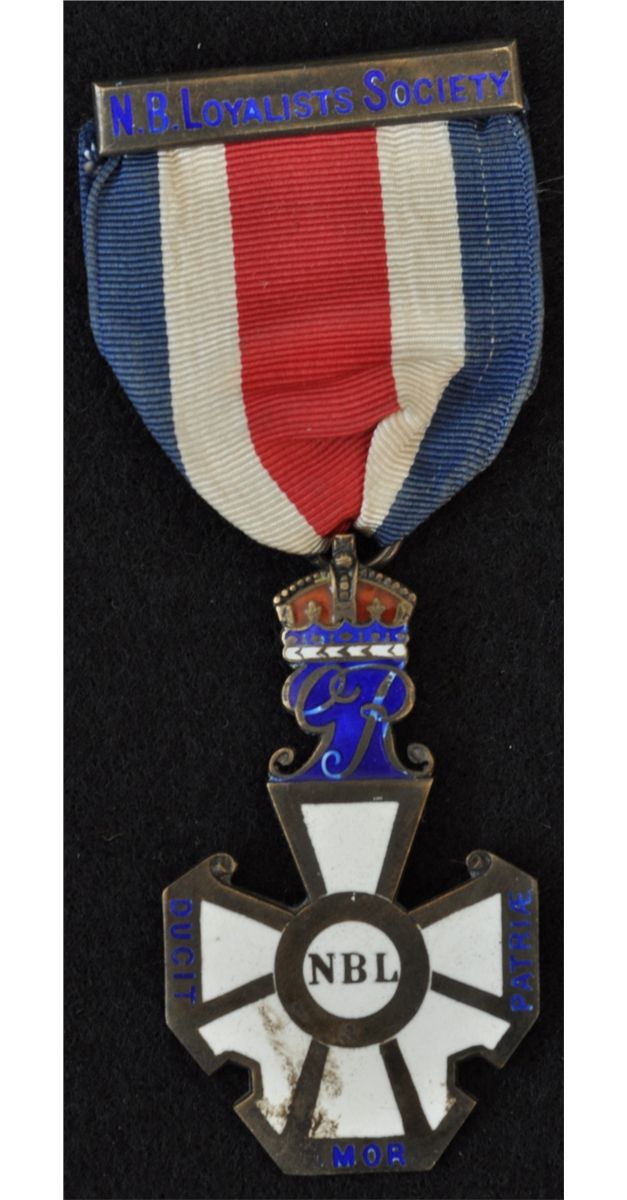 New Brunswick Loyalist Society - Attractive member's medal, silver, enamelled, red, white and blue ribbon, UNC. Members were either direct descendants or friends of the Loyalists.