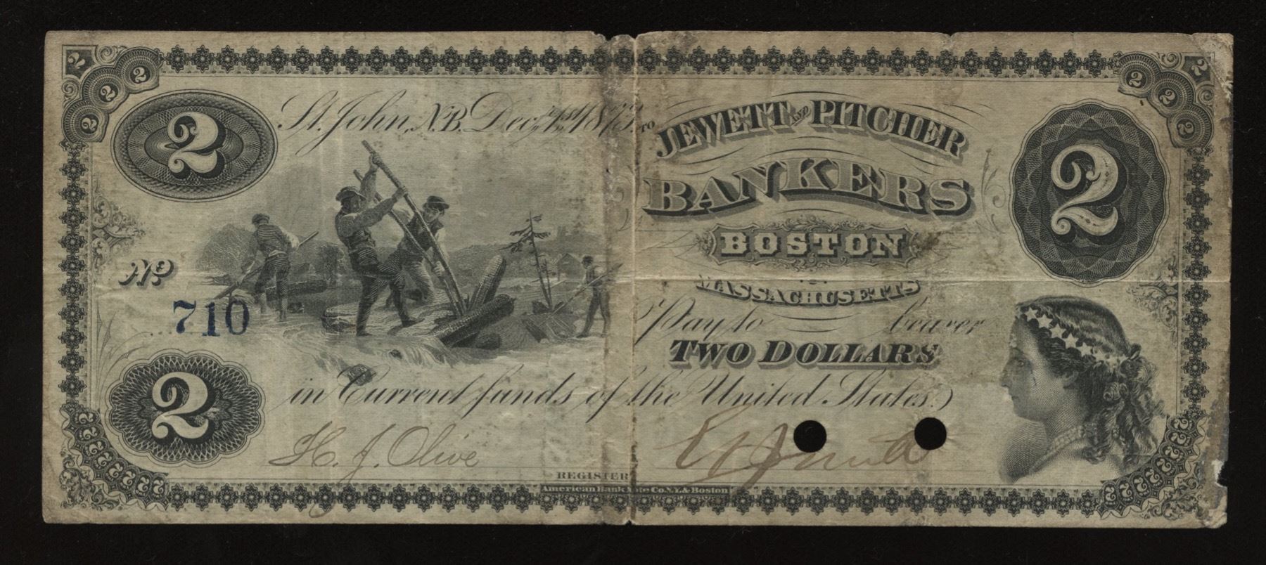CH NB 15-12-02-04, $2.00, Lumber Merchants, Green Back, Fine. S/N:710.