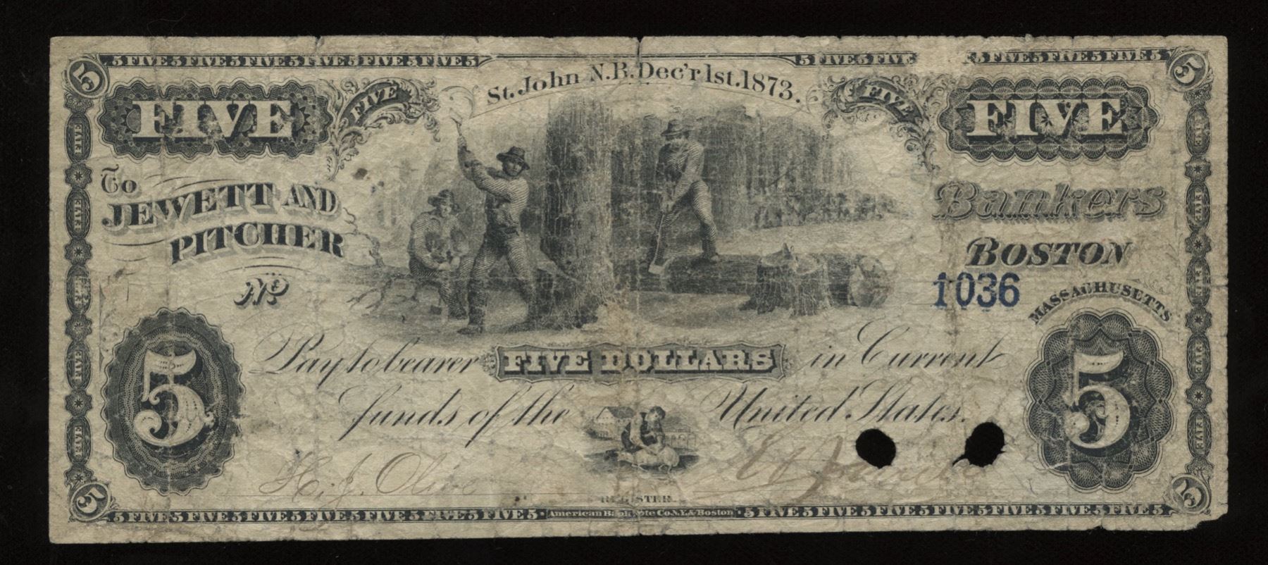 CH NB 15-12-02-06, $5.00, VG+ Lumber Merchants, Green Back, S/N:1036.
