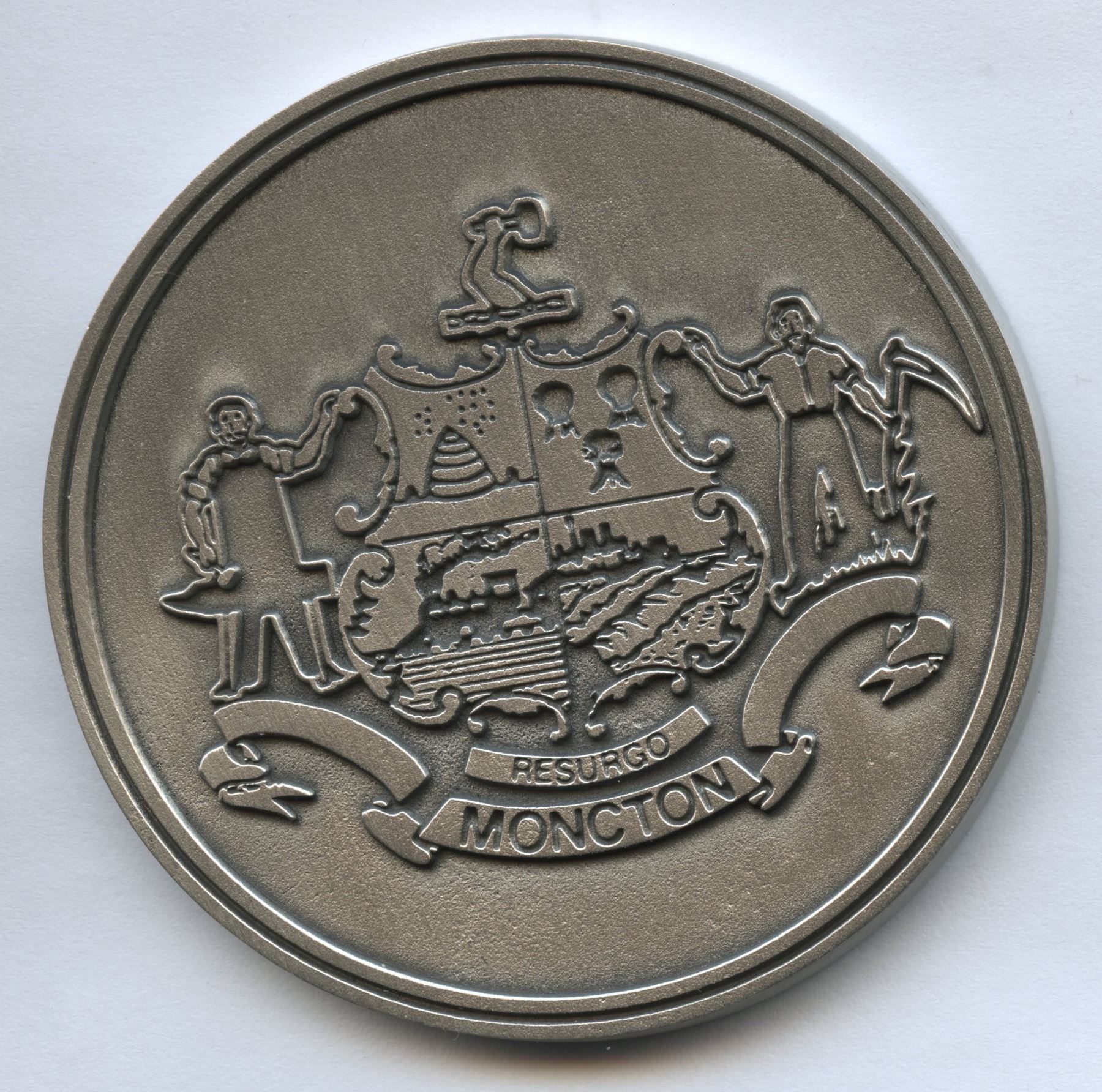 Another Pewter medal produced by Aitken's Pewter of Fredericton, NB. The obverse features a crest of the City of Moncton, the reverse 2005 The Year of the Veteran.