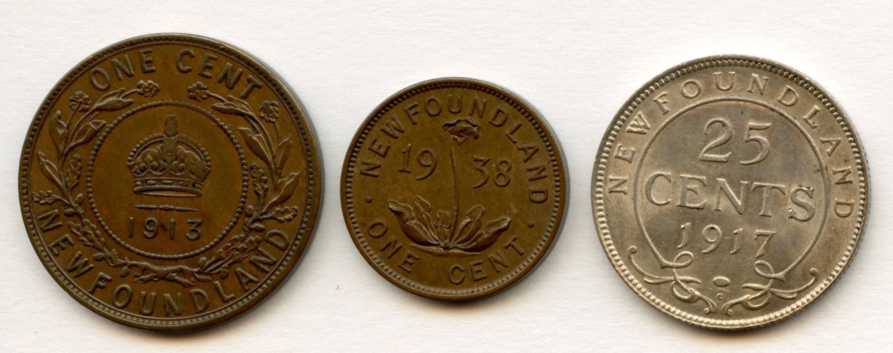 Includes: 1913 One Cent, EF. 1938 One Cent, Unc. 1917 Twenty-Five Cents. 3 pcs.
