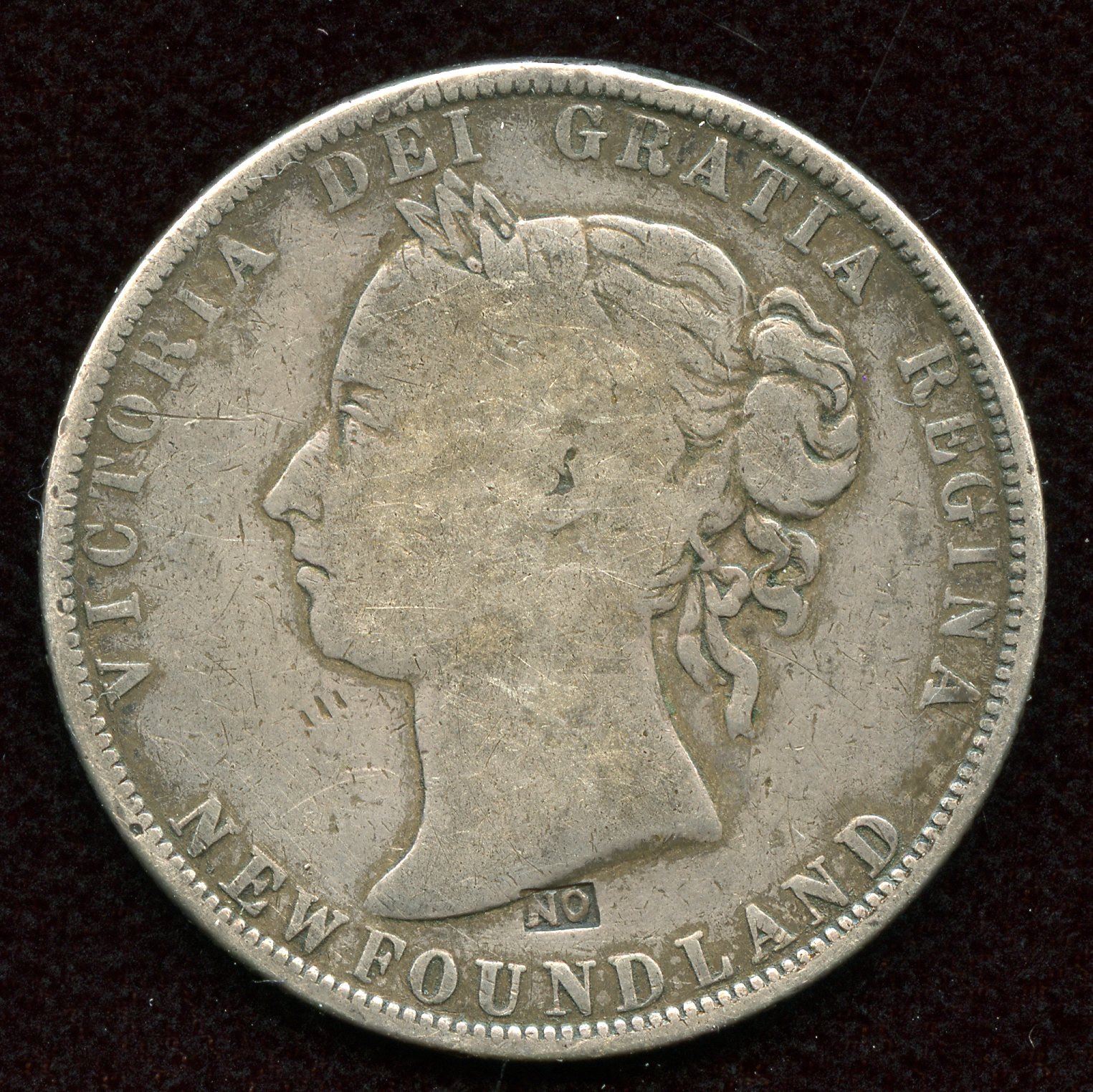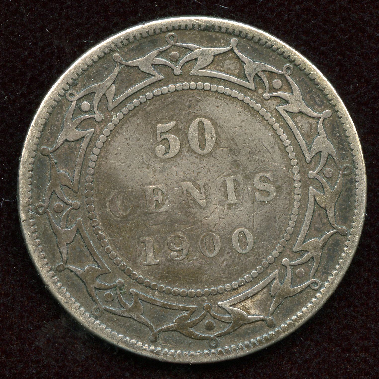 Nils Ohman, a jeweller in St. John's, Nfld. NO within cartouche counterstamped on Newfoundland 1900 50 cents, F, Brunk 29160.