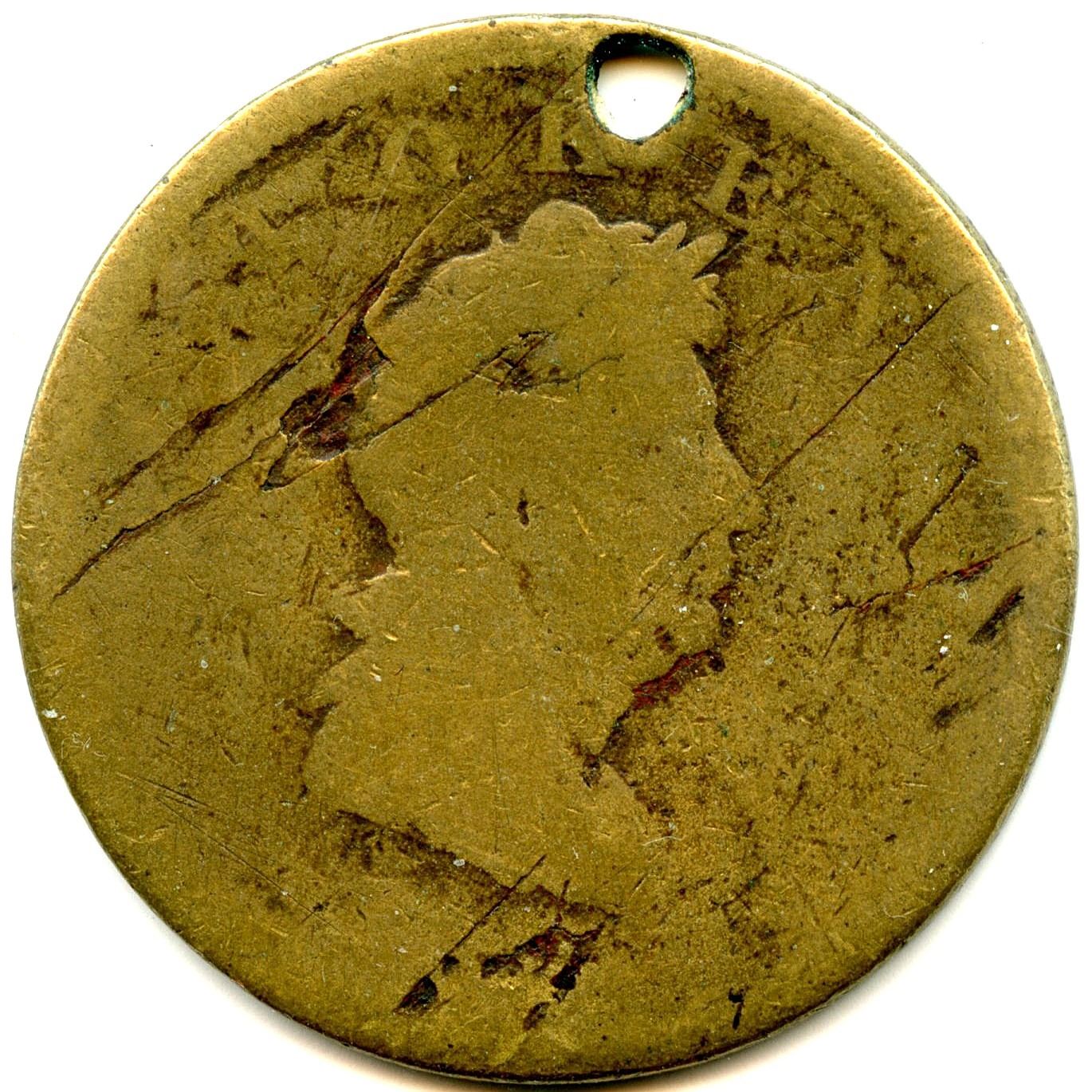 Br 925, CH FT-9B, brass holed. This example has environmental damage, about Good details. 1pc. Note: this lot is part of The Harry N. James Collection.