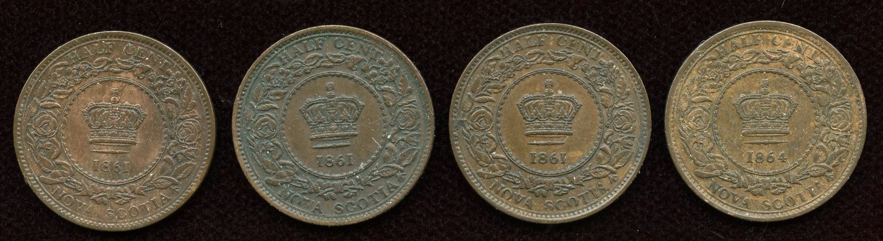 1861 Half Cent (x3), EF+; EF; EF/AU; 1864 Half Cent, EF. 4 pcs.