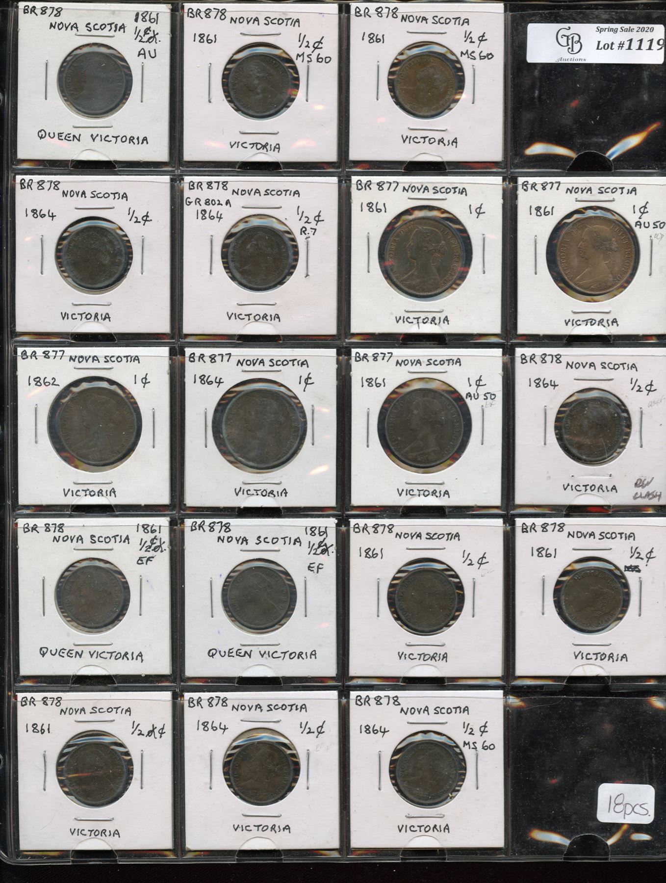 Lot includes: 1861 Half Cents x 8, 1864 x 5 including one with heavy rev. clash; 1c: 1861 x3; 1862 x1, 1864 x1. Mostly EF-strong AU, though the 1862 no better than Fine. 18 Pcs.
