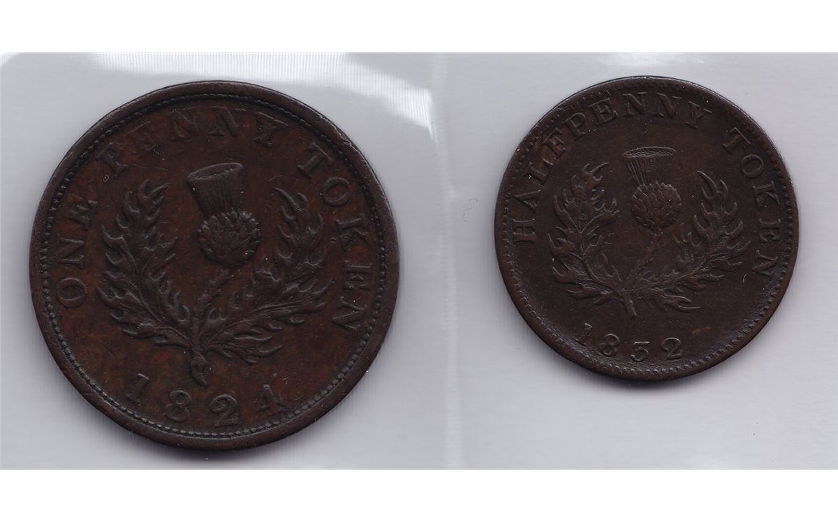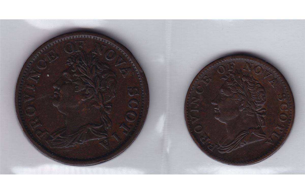 Nova Scotia Token Lot of Two Includes: Courteau 263, BR 868, CH NS-2A4, 1824 One Penny, EF; Courteau 266, BR 871, CH NS-1D2, 1832 Halfpenny, EF. 2 Pcs.