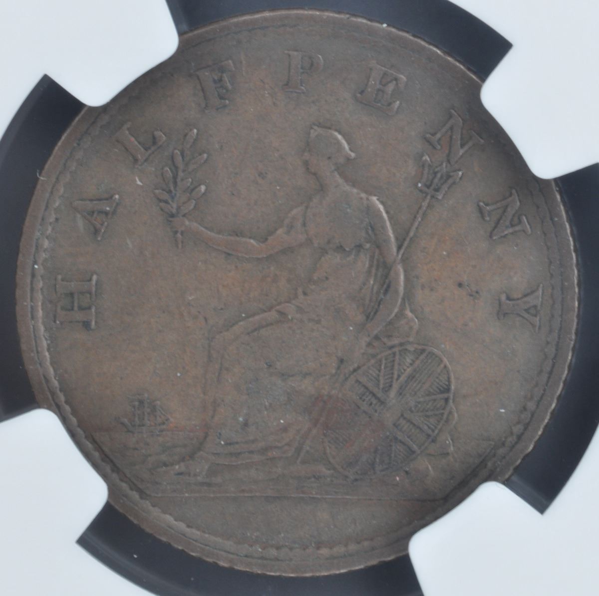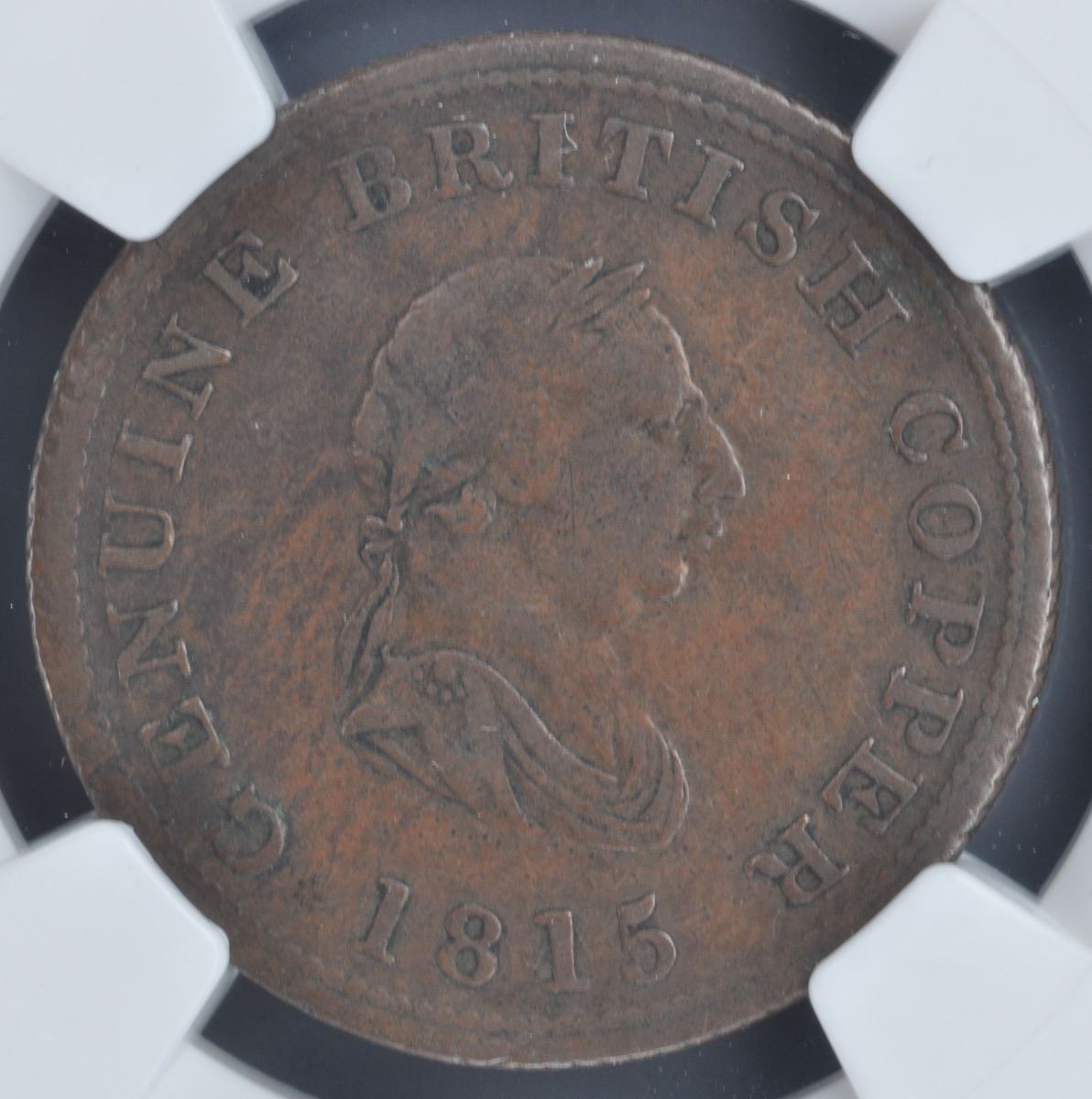 CH NS-26A2, "Genuine British Copper" issue, engrailed edge, NGC graded VF20 BN, Ex:Paul Montz Collection. Charlton notes that only one example of this variety has been certified, previous to this piece. Rare.