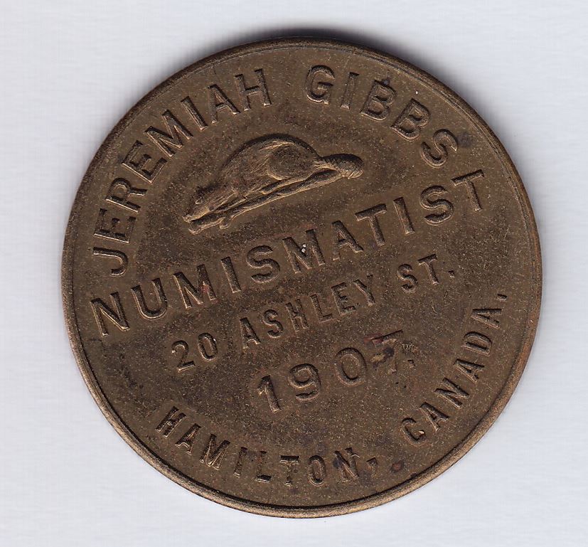 Numismatisits Cards - Jeremiah Gibb - 1903, copper, Unc, Hamilton, Ontario.