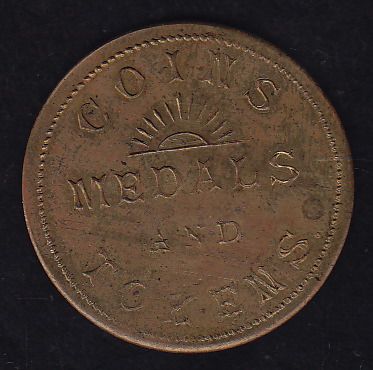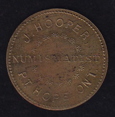 Numismatist Card. J. Hooper, Pt. Hope, ON, brass, SCARCE, AU.
