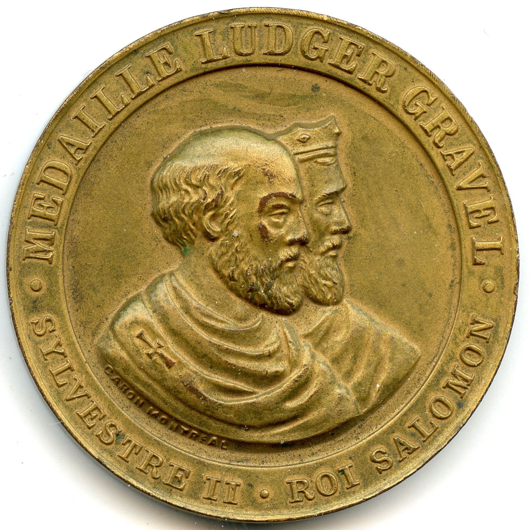 Ludger Gravel Premier Prix D'Arithmetique Medal, Brass, 38mm, 25.65g, EF; Thomas Elder, DeLorey 84, Bouquet Sou, (see Breton 690), Dedicated to Coin Collectors of Canada, Aluminum, 29mm, 2.18g, UNC. 2pcs.