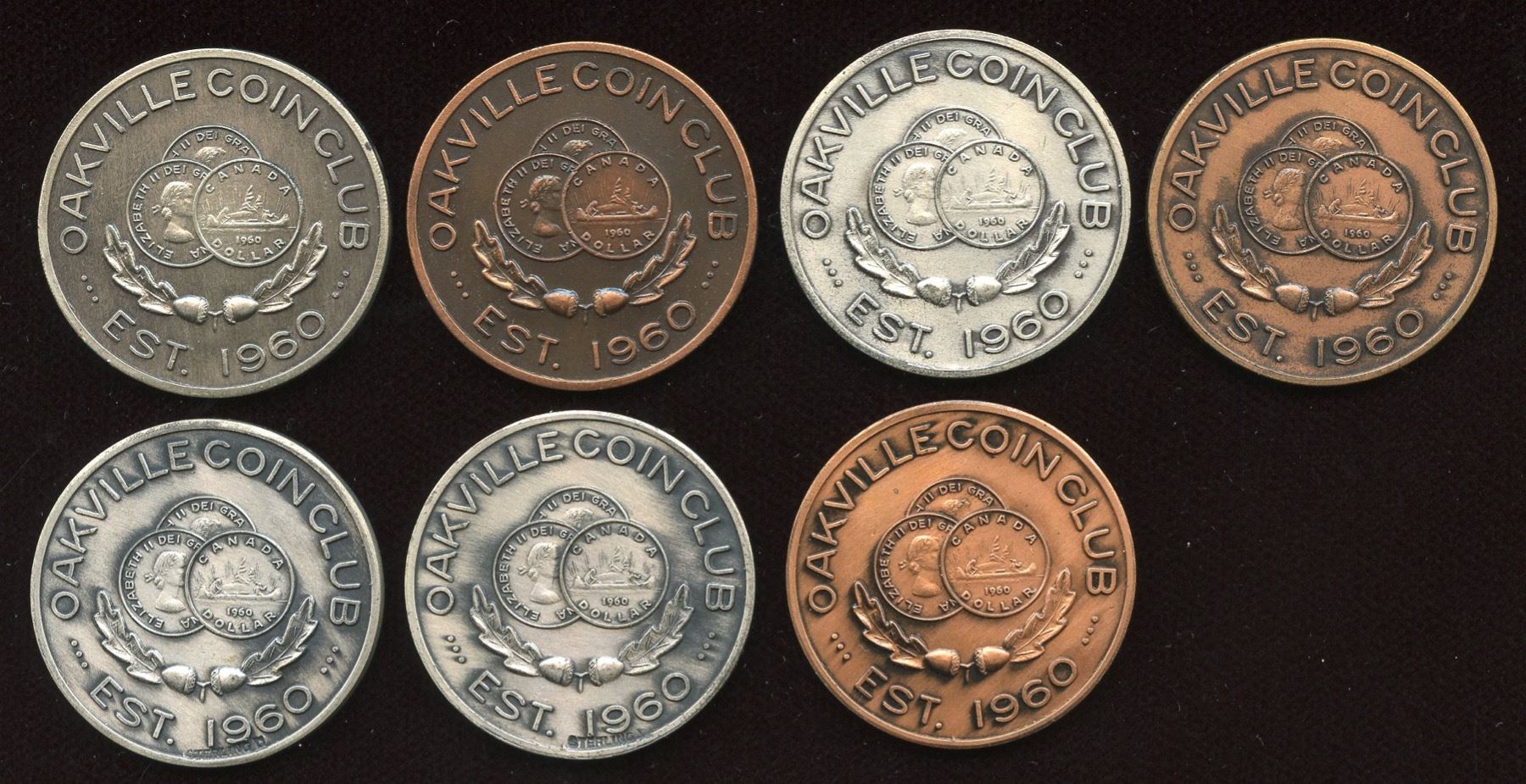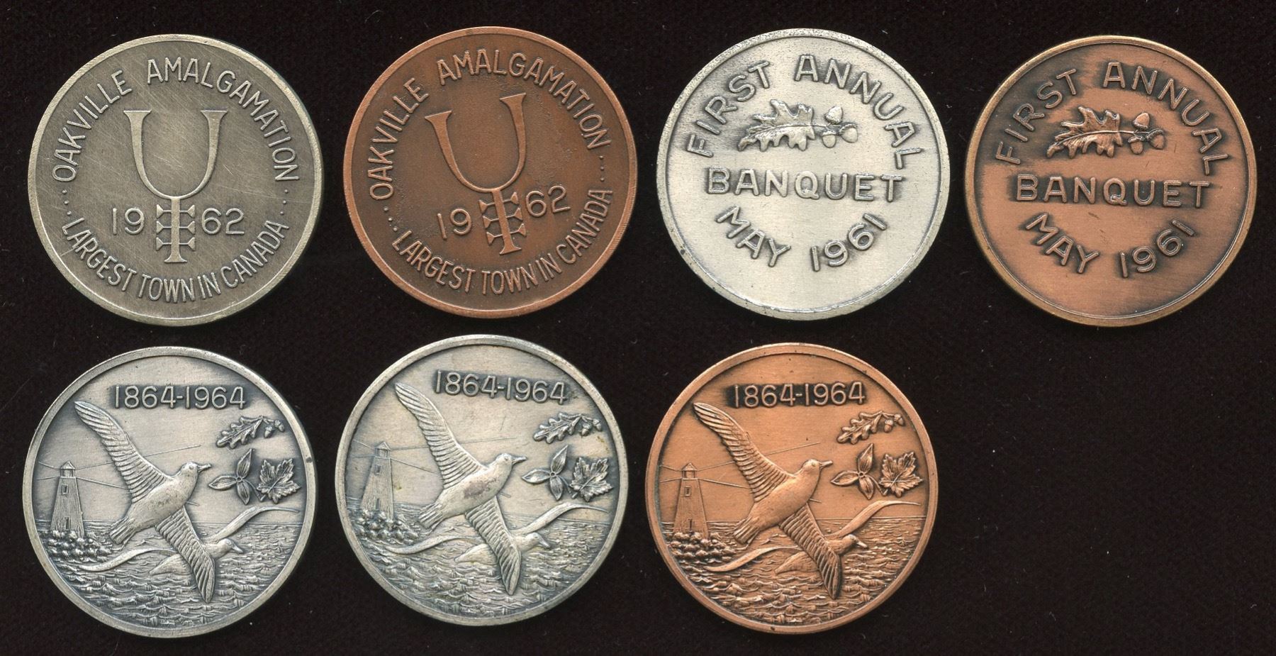 1962 Amalgamation bronze and silver, UNC; 1961 Banquet bronze and silver, UNC; 1964 club medals, bronze and 2 silver. 7 Pcs.