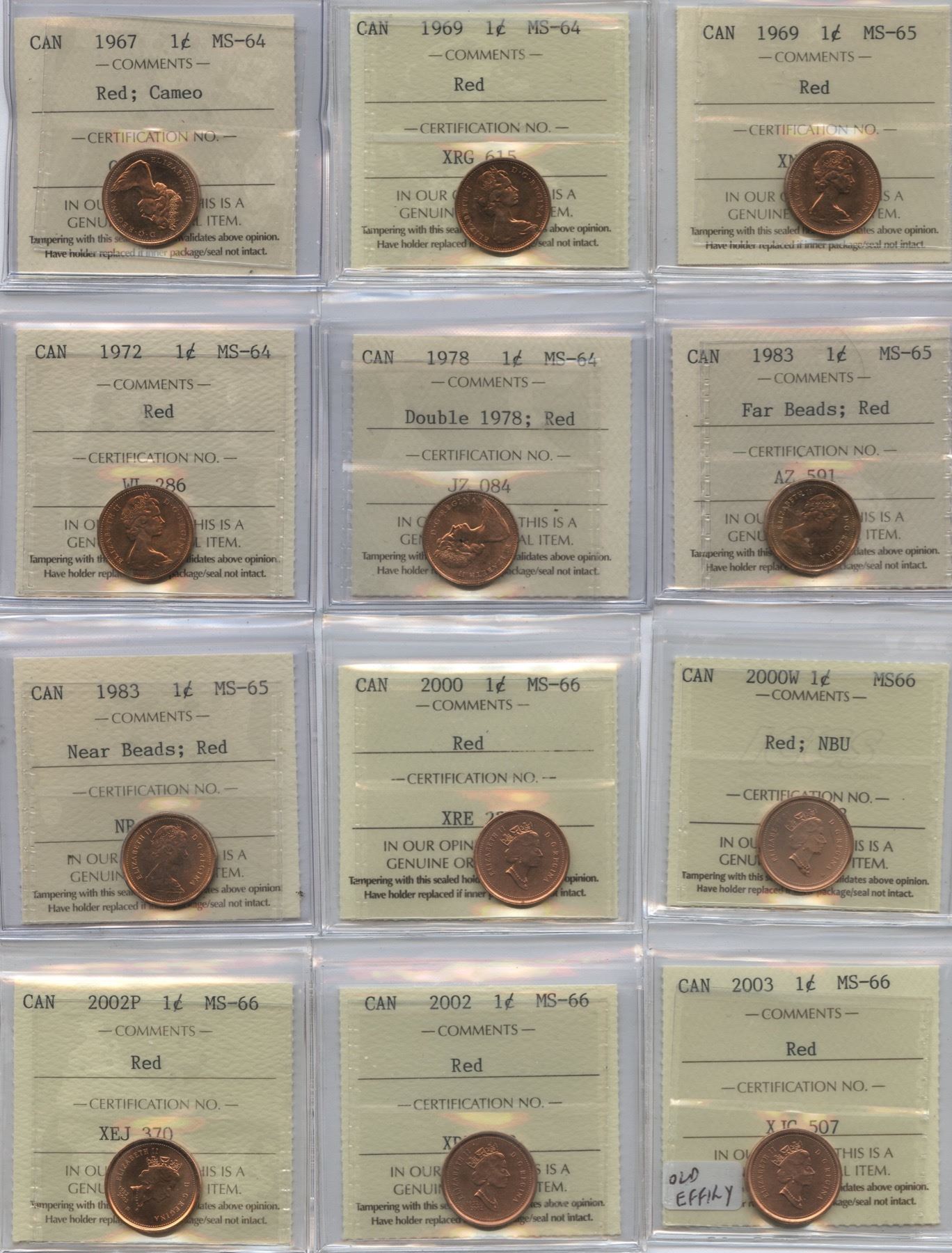 Includes: 1967 MS-64, Red; cameo. 1969 MS-64 & MS-65, Red. 1972 MS-64, Red. 1978 MS-64, Red - Double 1978. 1983 Near & Far Beads, MS-65 Red. 2000 MS-66, Red. 2000W MS66, Red; NBU. 2002P One Cent MS-66, Red. 2002 MS-66, Red. 2003 MS-66, Red. 2003P MS-66, New Effigy; Red. 2003 MS-66, New Effigy; Red. 2004P MS-66, Red. 2004 MS-66, Red. 16 pcs.