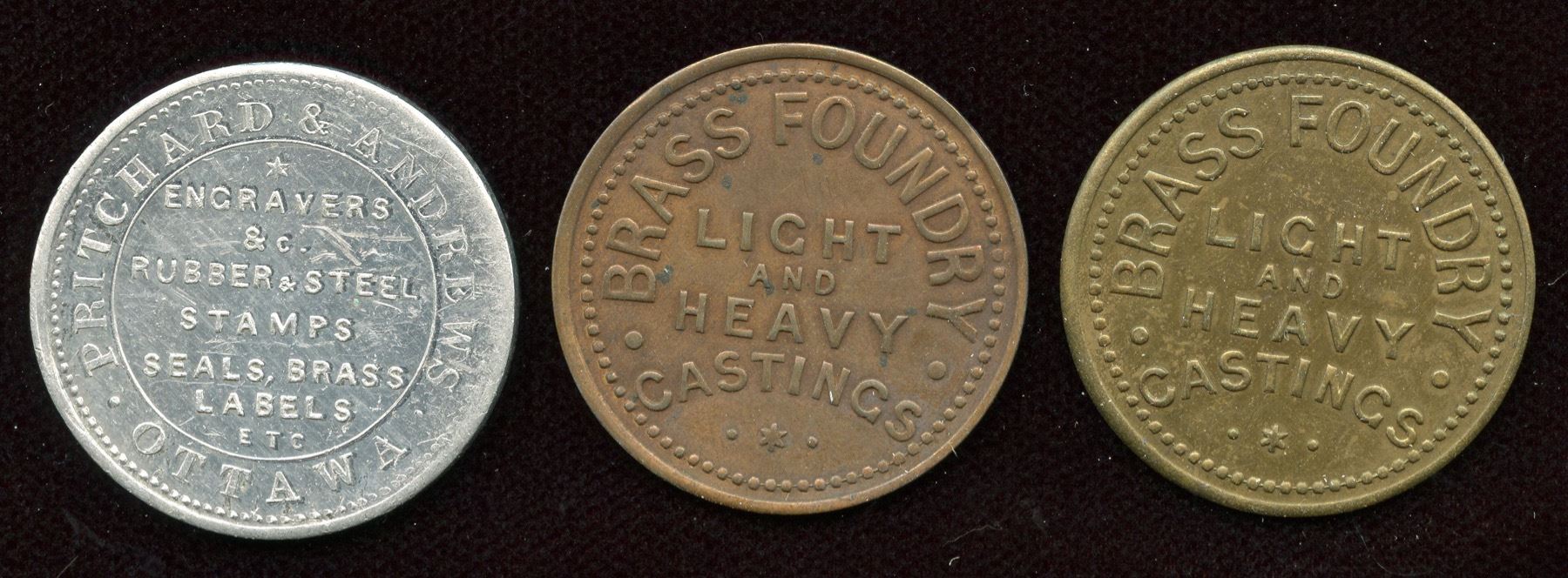 Br. 772, with star, Aluminum, AU; Br. 774, Copper, Unc; Br. 774, Brass, Unc. 3 pcs.