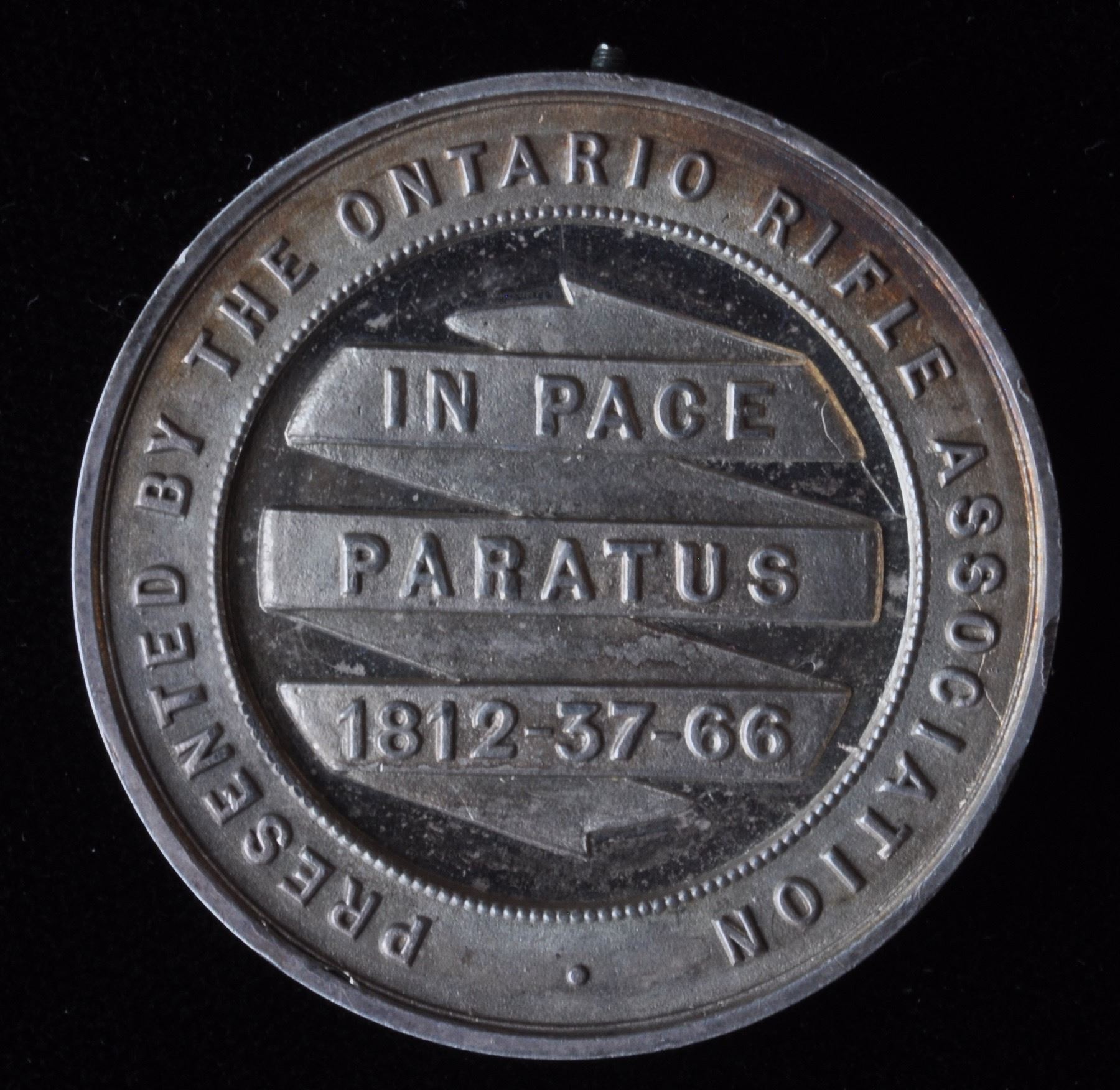 Ontario Medal - Ler 1601 Ontario Rifle Association with edge inscription B.R.A. 1884 . 1st Aggregate Won by Andrew Freeland, Silver, 39mm, 36.7 gms, drilled for suspension on edge. EF.