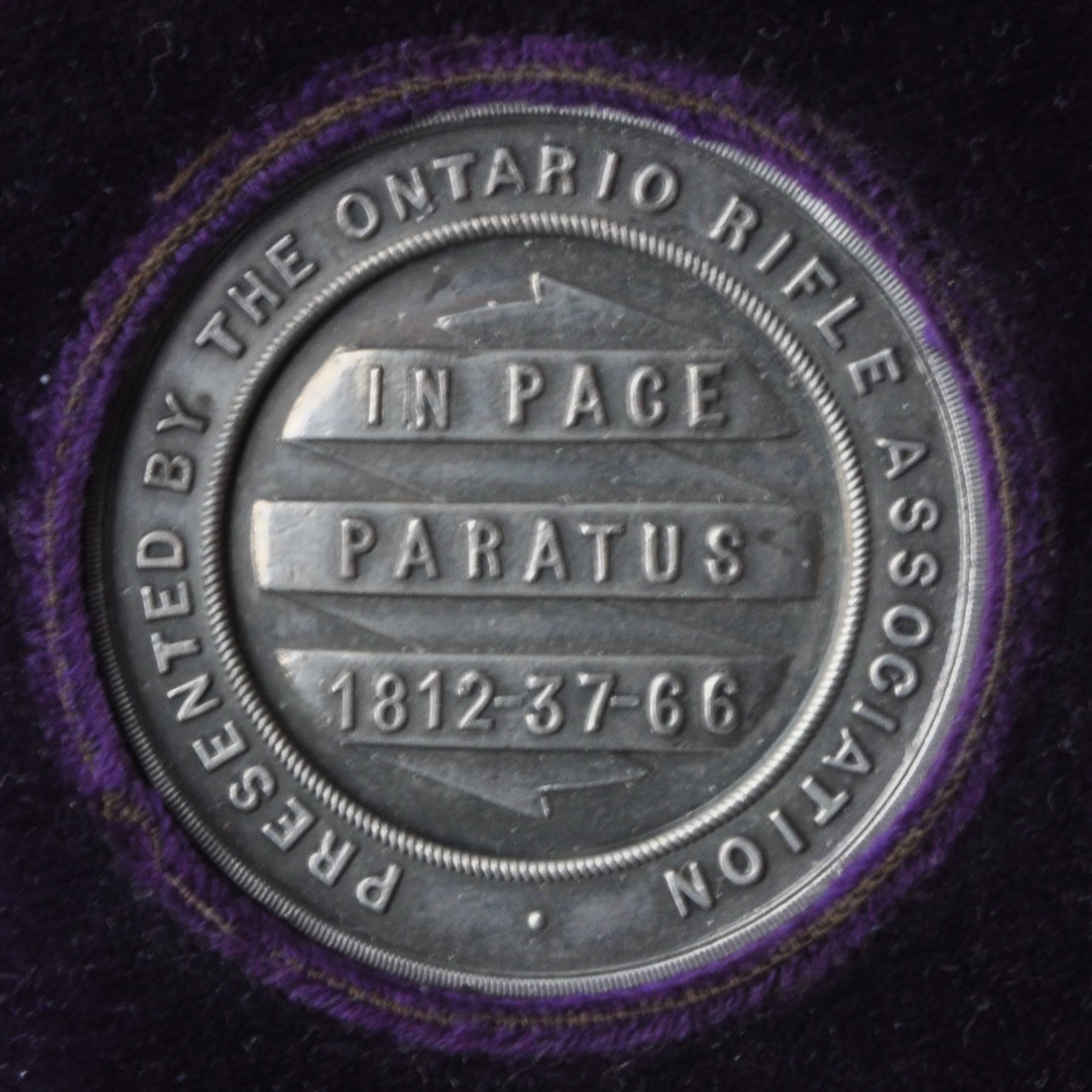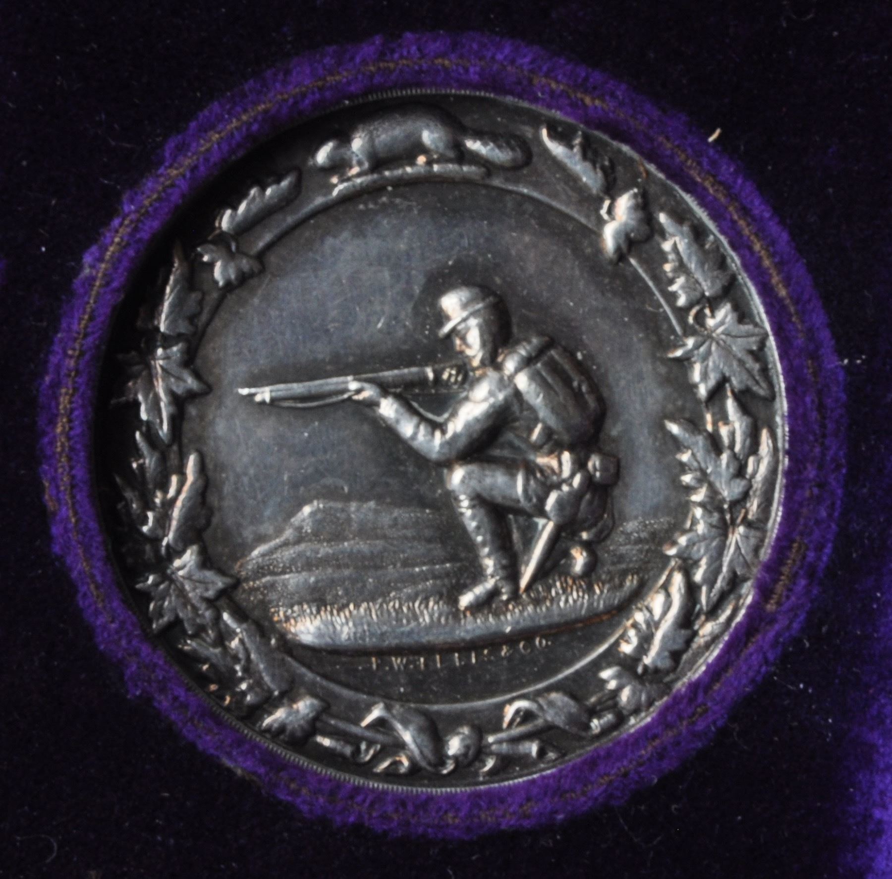 Ler 1601. In original case, Not Awarded, Ontario Rifle Association, silver, 30.3 gms, Maker P.W. Ellis. EF.