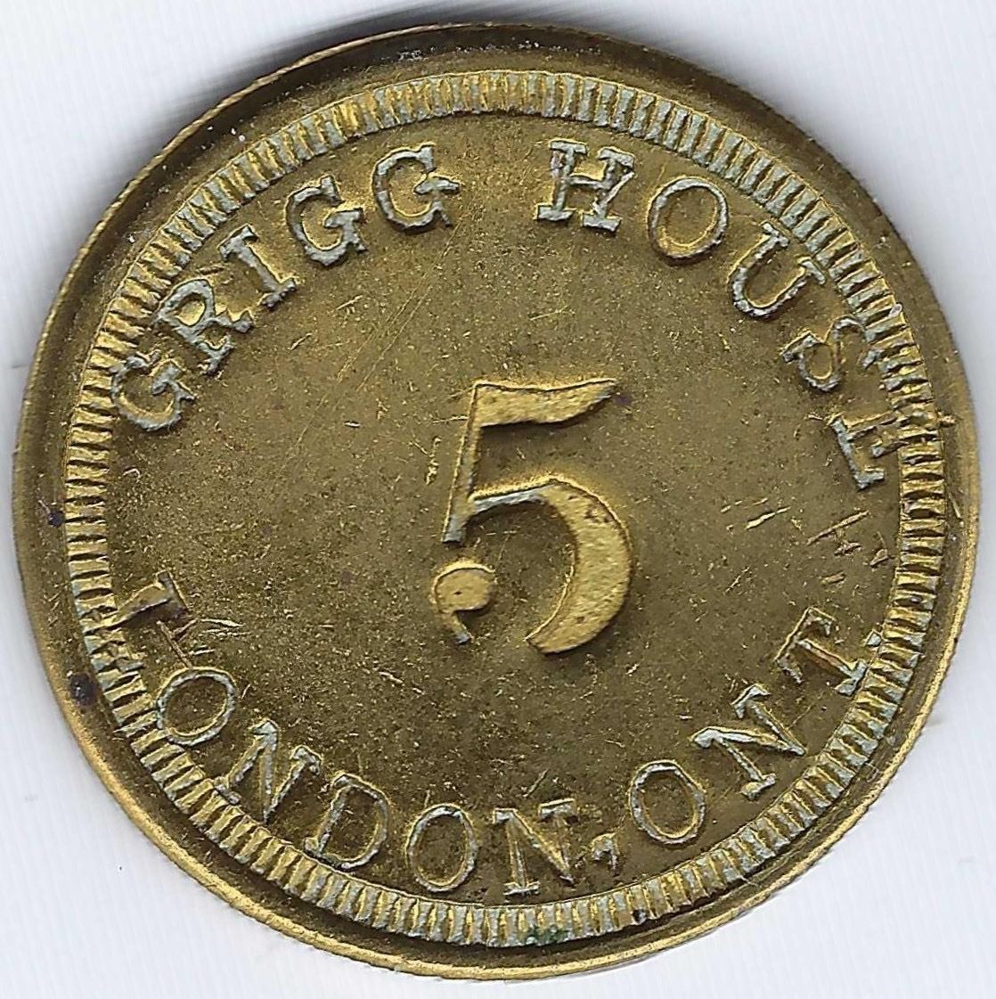 Ontario Middlesex County, London, Grigg House, 5 Legend Incuse.