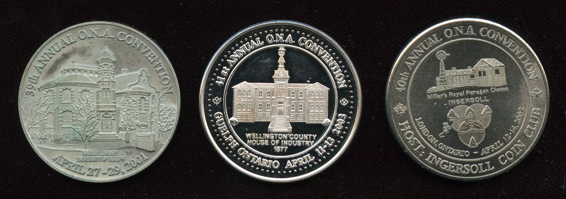 Guelph, 2001, nickel, "Club Services Chairman"; 2002, nickel, "Club Delegate Chair"; Guelph, 2003, silver, "Banquet Chairman". 3 Pcs.