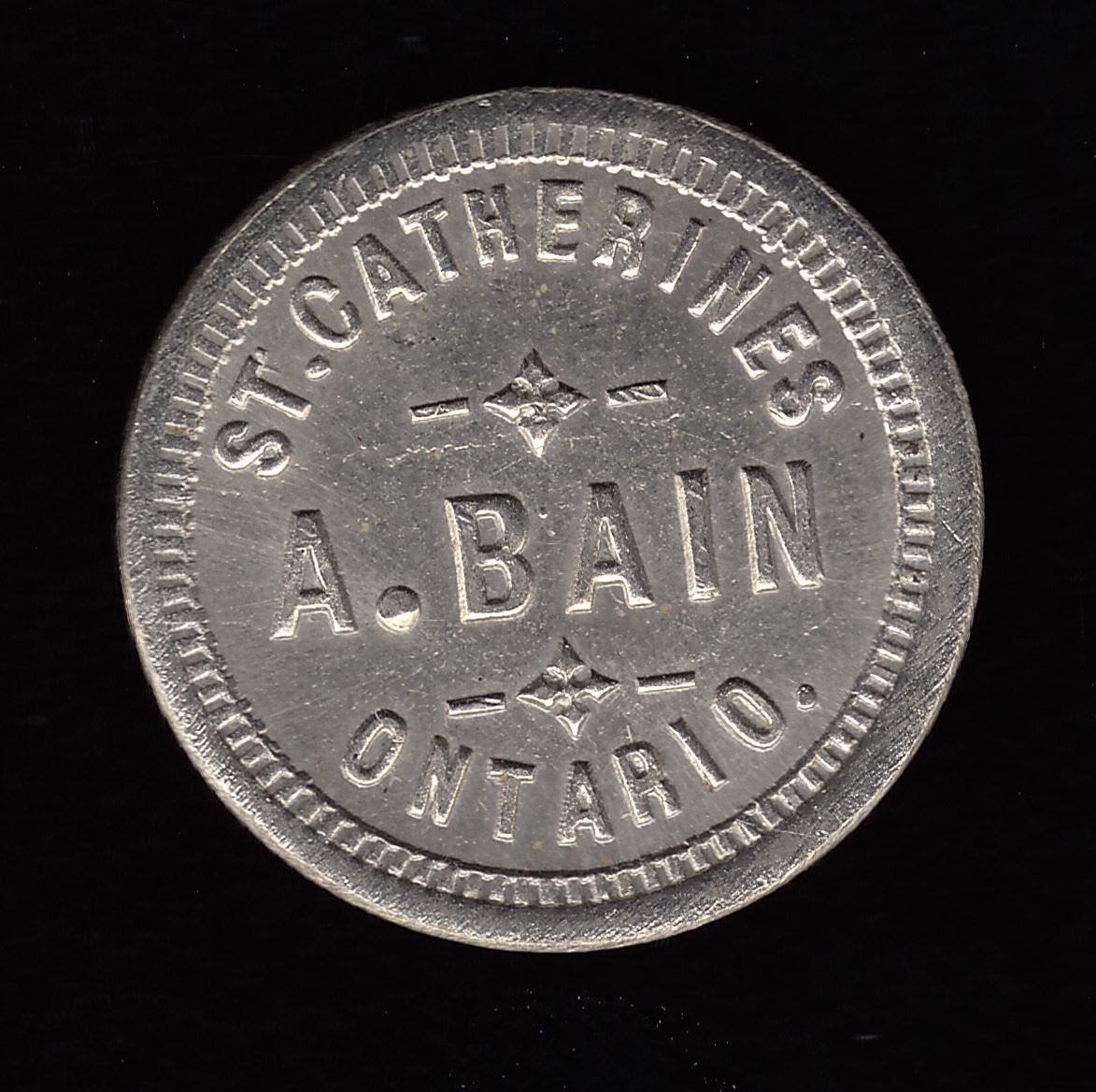 Br 750, St. Catherines, issued in 1887, UNC, white metal.