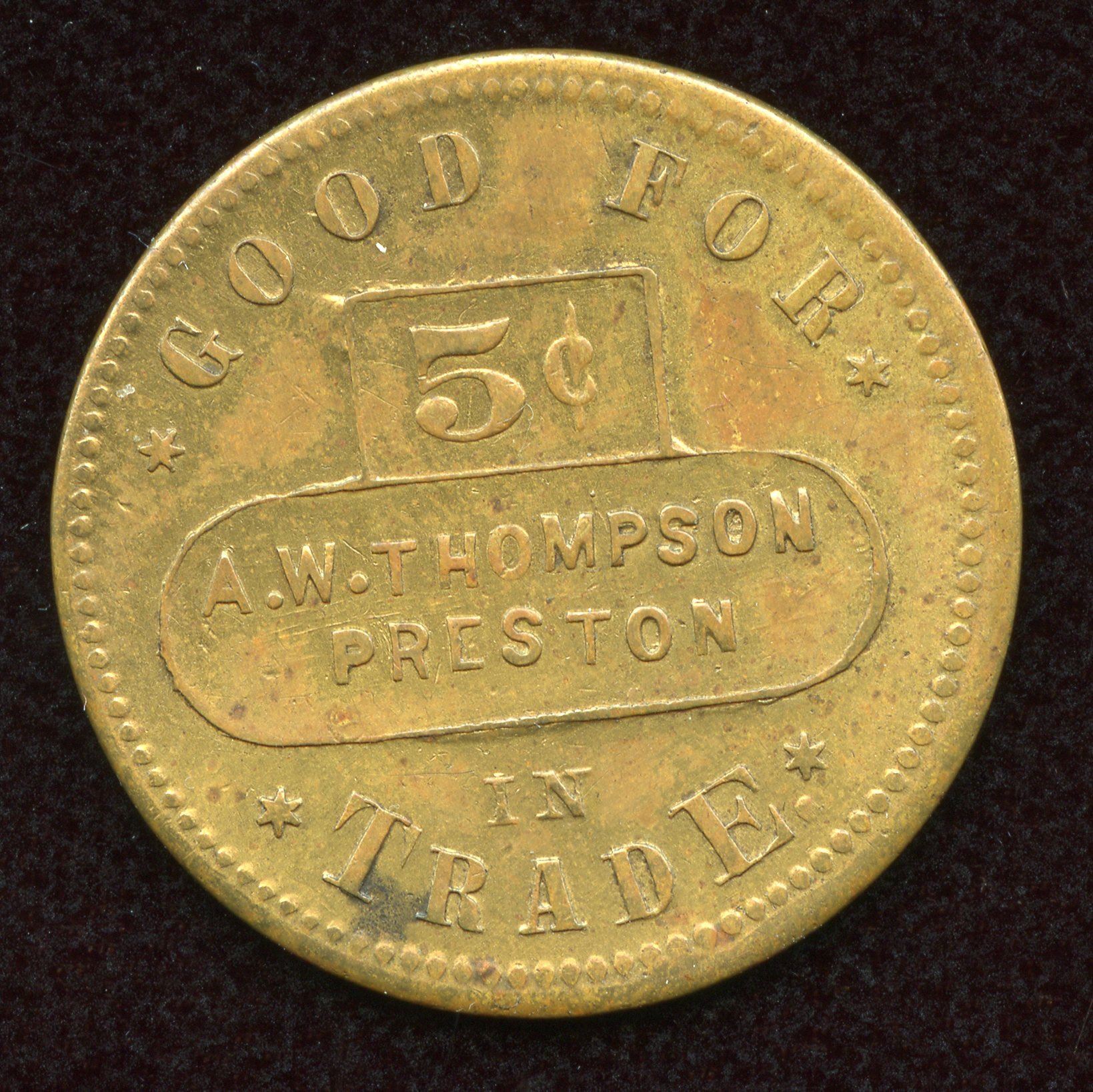 Br. 765, A.W. Thompson, 5c, Brunswick Balke Collender, Brass, EF.