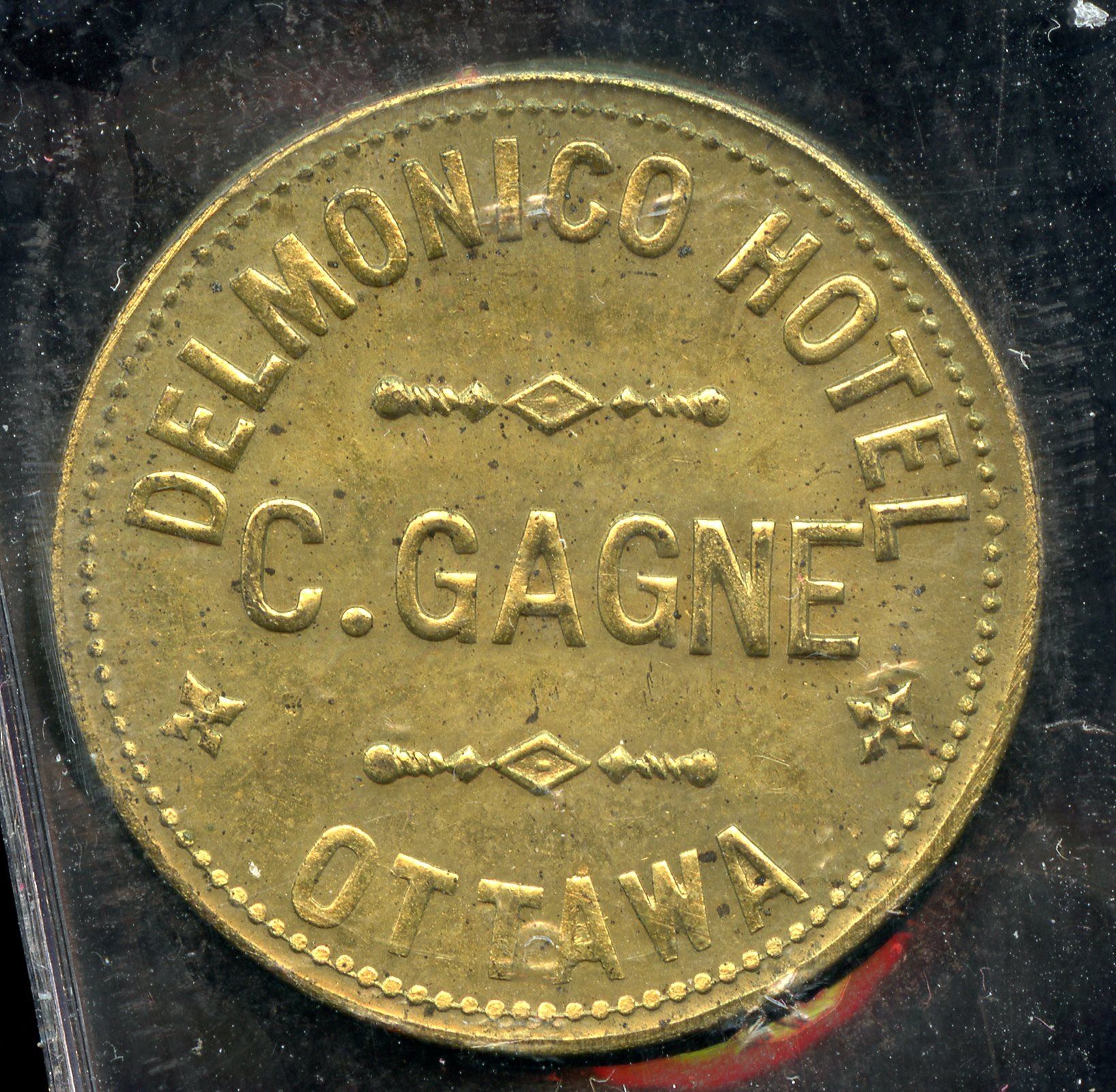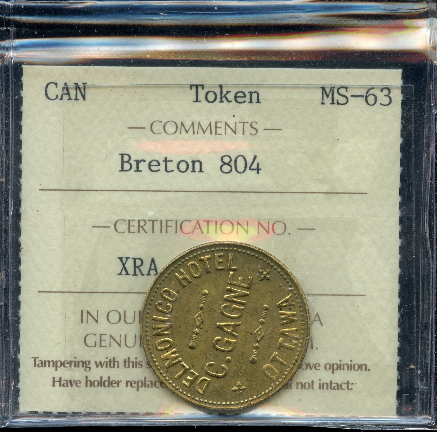 Br. 804, Delmonico Hotel, 15c, Brass, ICCS Graded MS-63.